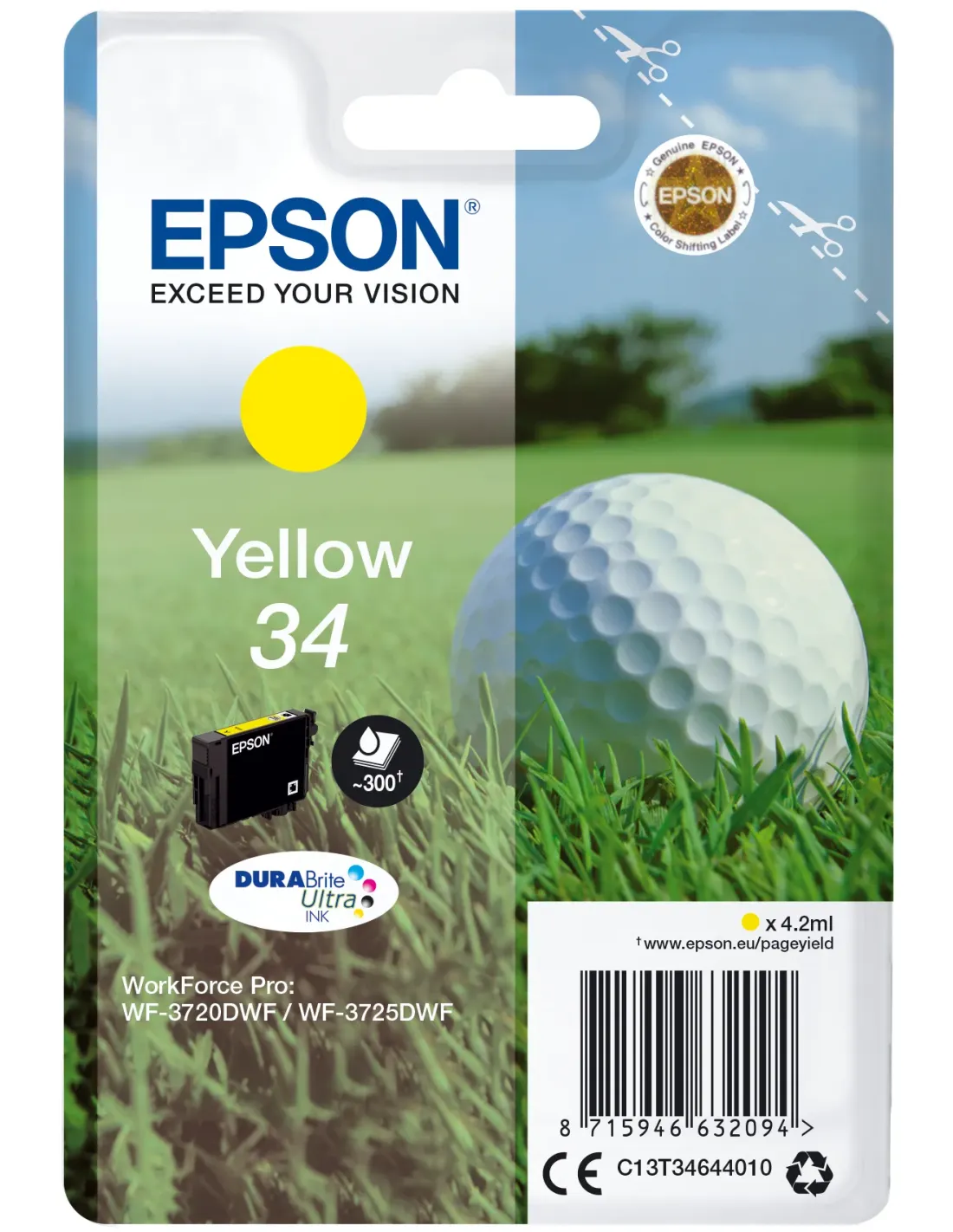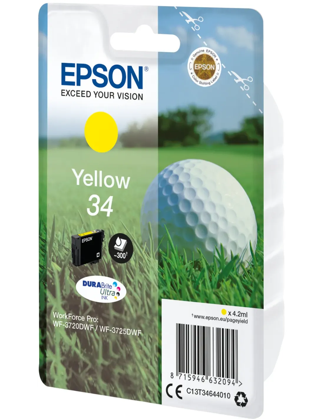 Epson Golf ball Singlepack Yellow 34 DURABrite Ultra Ink, Rendimiento estándar, Amarillo, Tinta a base de pigmentos, 4,2 ml, 1 pieza(s), 300 páginas