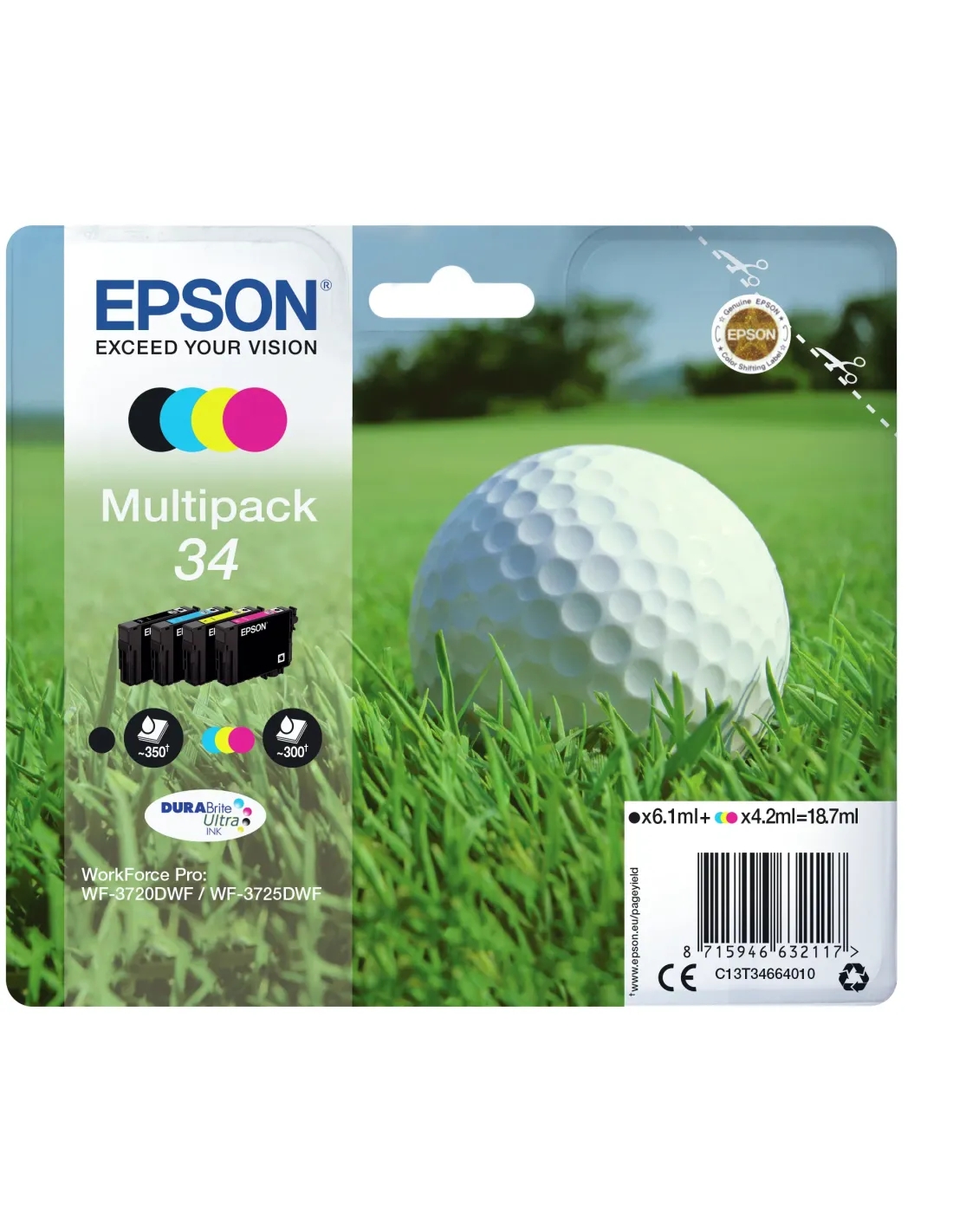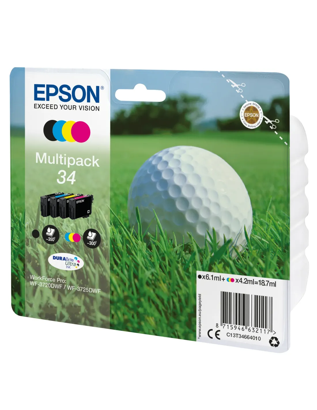 Epson Golf ball Multipack 4-colours 34 DURABrite Ultra Ink, Rendimiento estándar, Negro, Cian, Magenta, Amarillo, Tinta a base de pigmentos, 6,1 ml, 4,2 ml, 1 pieza(s)
