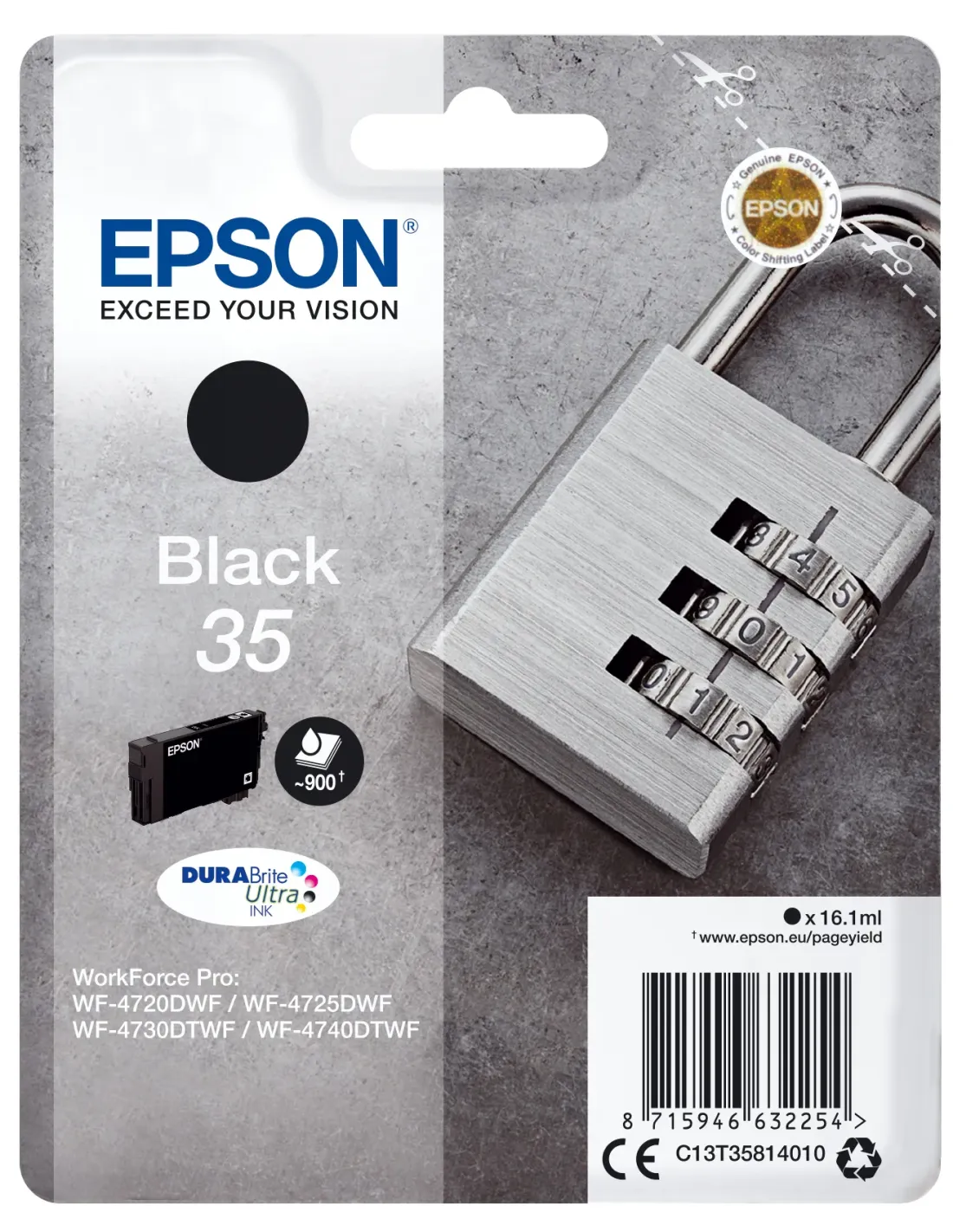 Epson Padlock Singlepack Black 35 DURABrite Ultra Ink, Rendimiento estándar, Negro, Tinta a base de pigmentos, 16,1 ml, 1 pieza(s), 900 páginas