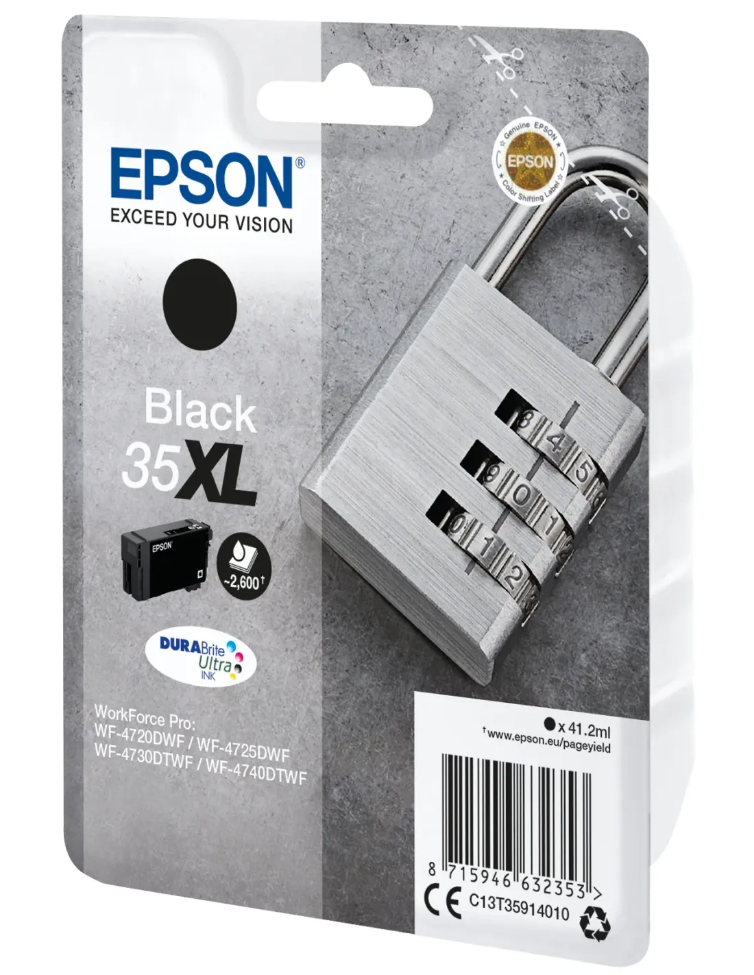Epson Padlock Singlepack Black 35XL DURABrite Ultra Ink, Alto rendimiento (XL), Negro, Tinta a base de pigmentos, 41,2 ml, 1 pieza(s), 2600 páginas