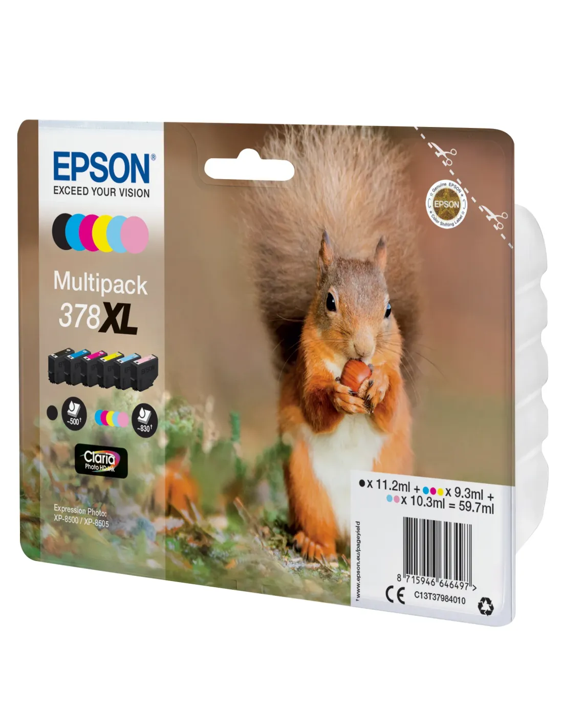 Epson Squirrel Multipack 6-colours 378XL Claria Photo HD Ink, Alto rendimiento (XL), Negro, Cian, Cian claro, Magenta, Magenta claro, Amarillo, 11,2 ml, 9,3 ml, 1 pieza(s), Multipack
