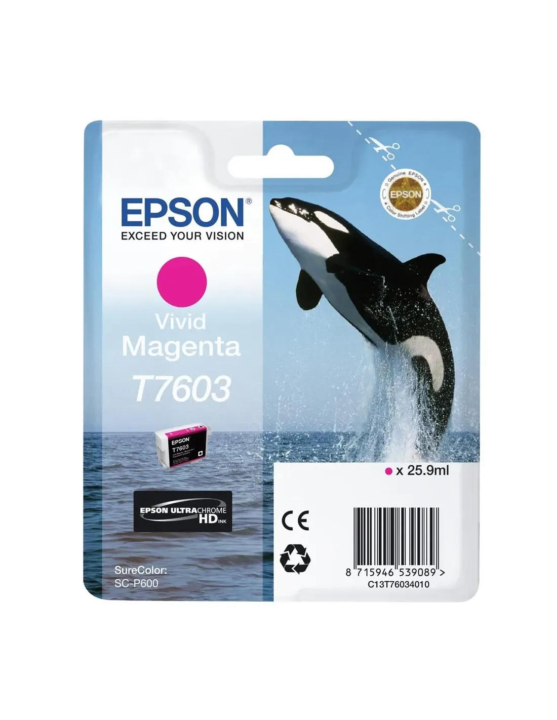 CaracterísticasTipo OriginalCódigo OEM C13T76034010Tipo de tinta Pigment-based inkVolumen de tinta de color 25.9 mlTipo de tinta de color Pigment-based inkDatos logísticosCantidad por palé 2400 pieza(s)Alto de la caja principal 146 mmAncho de la caja principal 120 mmCantidad mínima del pedido 8 pieza(s)Longitud de la caja 260 mmCantidad por caja 1 pieza(s)Cantidad por capa de palet 240 pieza(s)Cantidad por capa de palé (Reino Unido) 240 pieza(s)Cantidad por palé (Reino Unido) 2400 pieza(s)DesempeñoTecnología de impresión Inkjet printingCompatibilidad SureColor SC-P600Colores de impresión Vivid MagentaPaís de origen IndonesiaMarca compatible EpsonDetalles técnicosCódigo de Sistema de Armomización (SA) 84439990EmpaquetadoProfundidad del paquete 33 mmAltura del paquete 120 mmAncho del paquete 145 mmCantidad por paquete 1 pieza(s)
