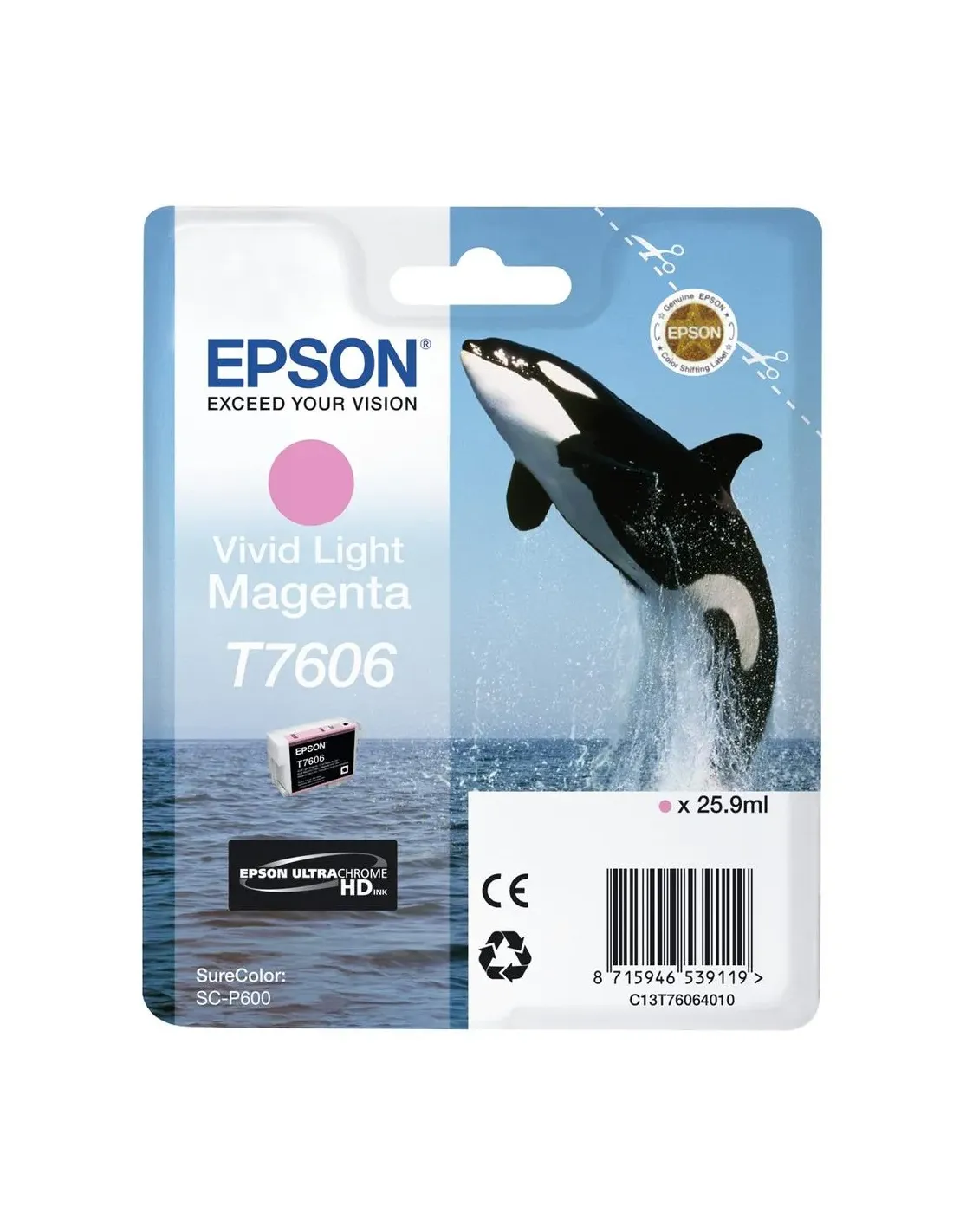 CaracterísticasTipo OriginalCódigo OEM C13T76064010Tipo de tinta Pigment-based inkVolumen de tinta de color 25.9 mlTipo de tinta de color Pigment-based inkDatos logísticosCantidad por palé 2400 pieza(s)Alto de la caja principal 146 mmAncho de la caja principal 120 mmCantidad mínima del pedido 8 pieza(s)Longitud de la caja 260 mmCantidad por caja 1 pieza(s)Cantidad por capa de palet 240 pieza(s)Cantidad por capa de palé (Reino Unido) 240 pieza(s)Cantidad por palé (Reino Unido) 2400 pieza(s)DesempeñoTecnología de impresión Inkjet printingCompatibilidad SureColor SC-P600Colores de impresión Vivid Light MagentaPaís de origen IndonesiaMarca compatible EpsonDetalles técnicosCódigo de Sistema de Armomización (SA) 84439990EmpaquetadoProfundidad del paquete 33 mmAltura del paquete 120 mmAncho del paquete 145 mmCantidad por paquete 1 pieza(s)
