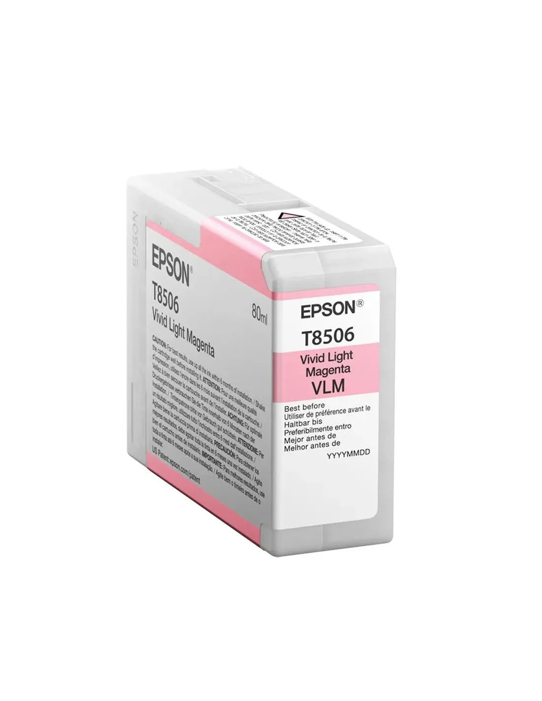 CaracterísticasTipo OriginalCódigo OEM C13T850600Tipo de tinta Pigment-based inkVolumen de tinta de color 80 mlCantidad de cartuchos de tinta de color 1Tipo de tinta de color Pigment-based inkDatos logísticosCantidad por palé 2520 pieza(s)Alto de la caja principal 203 mmAncho de la caja principal 192 mmPeso del envase completo 5062 gAnchura del palé 800 mmLongitud del palé 1200 mmAltura del palé 1800 mmLongitud de la caja 308 mmCantidad por caja 30 pieza(s)Cantidad por capa de palet 420 pieza(s)Cantidad por capa de palé (Reino Unido) 540 pieza(s)Cantidad por palé (Reino Unido) 3600 pieza(s)Longitud del palé (Reino Unido) 1200 mmAnchura del palé (Reino Unido) 1000 mmAltura del palé (Reino Unido) 1800 mmDesempeñoTecnología de impresión Inkjet printingCompatibilidad - SureColor SC-P800Colores de impresión Light magentaPaís de origen ChinaMarca compatible EpsonDetalles técnicosCódigo de Sistema de Armomización (SA) 84439990EmpaquetadoPeso del paquete 162 gProfundidad del paquete 100 mmAltura del paquete 35 mmAncho del paquete 80 mmCantidad por paquete 1 pieza(s)