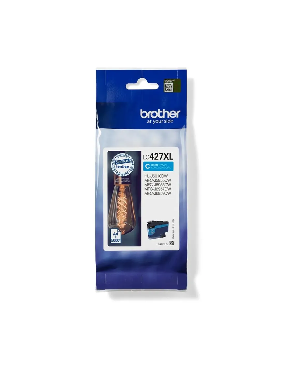 Características del Cartucho Brother LC427XLC CianEl cartucho de tinta Brother LC427XLC en color cian está diseñado para ofrecer un rendimiento duradero y una calidad de impresión profesional en cada página. Ideal para usuarios que necesitan imprimir documentos a color de forma frecuente sin renunciar a la economía, este cartucho es compatible con impresoras de tinta Brother que utilizan consumibles independientes por color.Alto rendimiento con calidad profesionalGracias a su capacidad de larga duración, el LC427XLC permite realizar hasta 5.000 impresiones según el estándar ISO/IEC 24711, lo que garantiza un bajo coste por página y una excelente relación calidad-precio. Además, utiliza tinta pigmentada que proporciona resultados más nítidos y resistentes al agua y a la decoloración.Rendimiento de hasta 5.000 páginasTinta pigmentada para colores intensos y duraderosCalidad profesional en documentos a colorDiseño práctico y funcionalEste cartucho forma parte del sistema de cartuchos individuales Brother, lo que permite sustituir solo el color agotado, reduciendo el desperdicio y maximizando la eficiencia. Además, su instalación es rápida y sencilla gracias al acceso frontal del equipo, y cuenta con modo de ahorro de tinta para prolongar la vida útil del consumible cuando sea necesario.Cartuchos individuales: sustituye solo el que necesitasModo ahorro de tinta disponibleInstalación fácil desde el frontal de la impresoraCompatibilidadEste apartado requiere más información para completarse correctamente. Por favor, indica los modelos de impresora compatibles.Otras especificacionesCódigo del producto: LC427XLCColor: CianTipo de tinta: Pigmentada