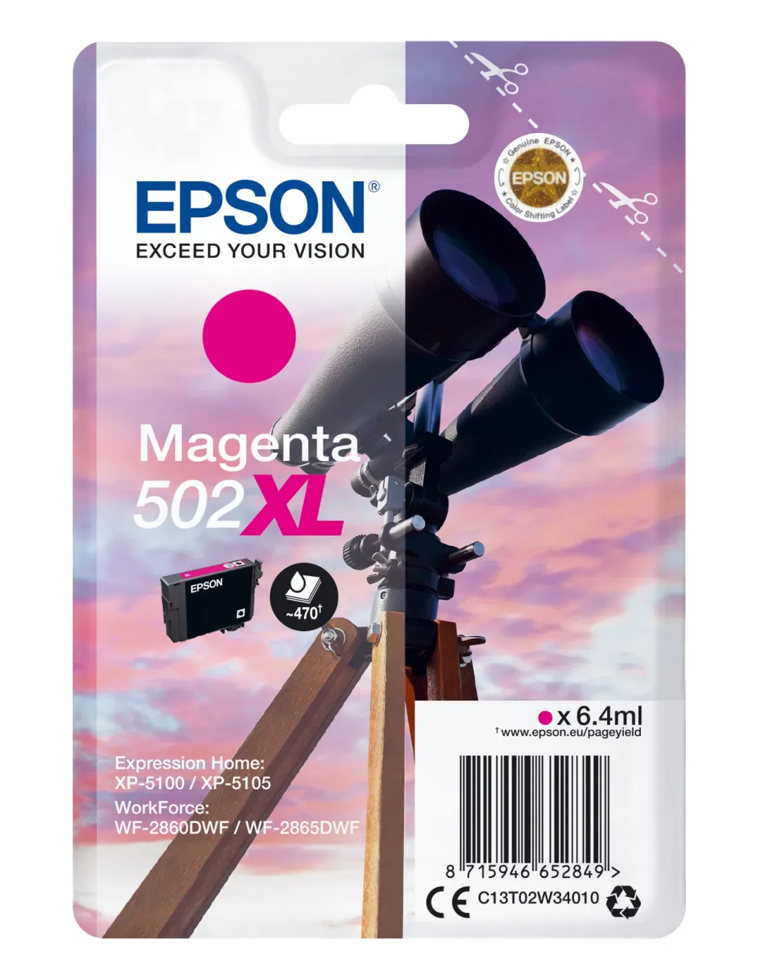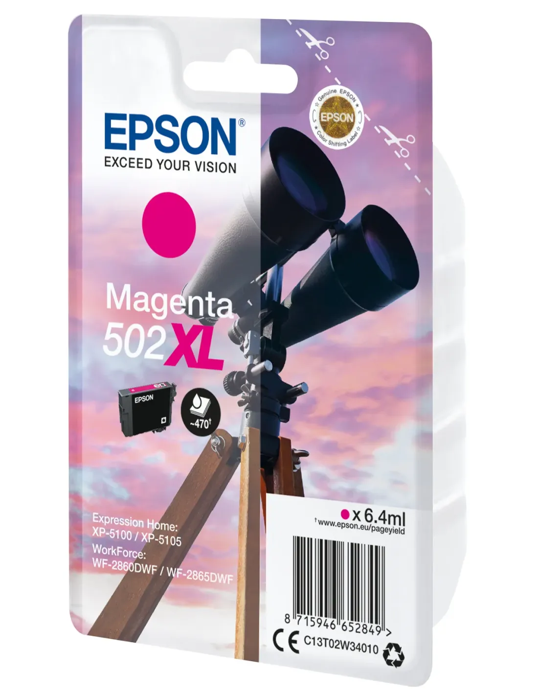Epson Singlepack Magenta 502XL Ink, Alto rendimiento (XL), Magenta, Tinta a base de pigmentos, 6,4 ml, 1 pieza(s), 470 páginas