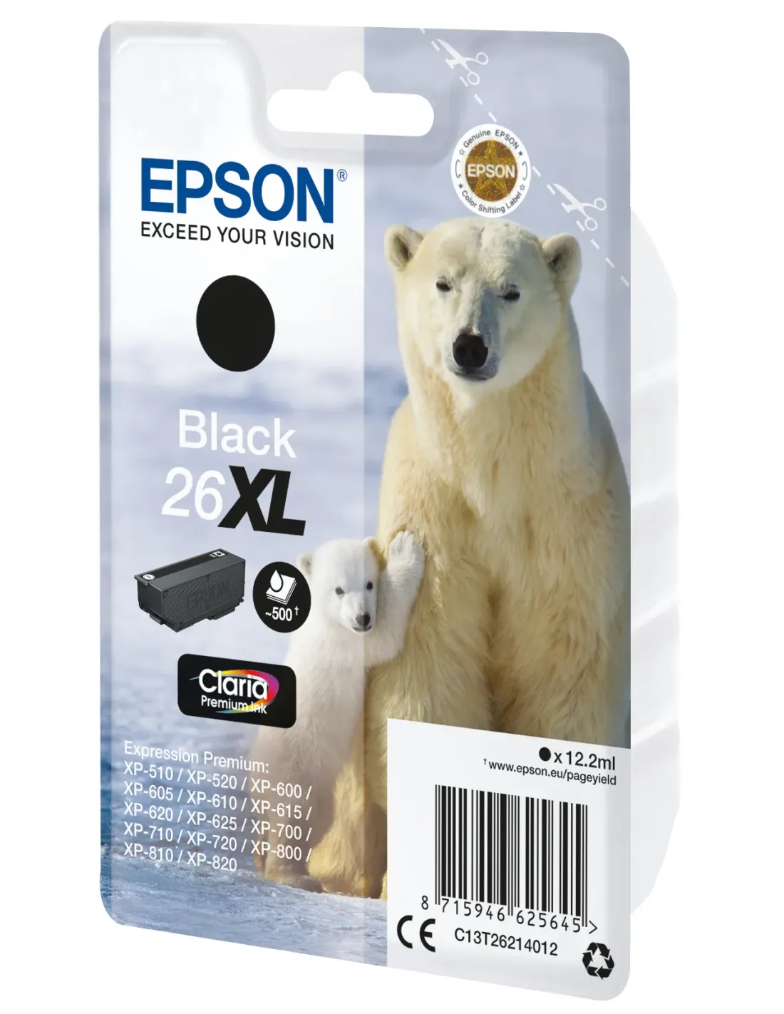 Epson Cartucho 26XL negro, Alto rendimiento (XL), Negro, Tinta a base de pigmentos, 12,2 ml, 1 pieza(s), 500 páginas