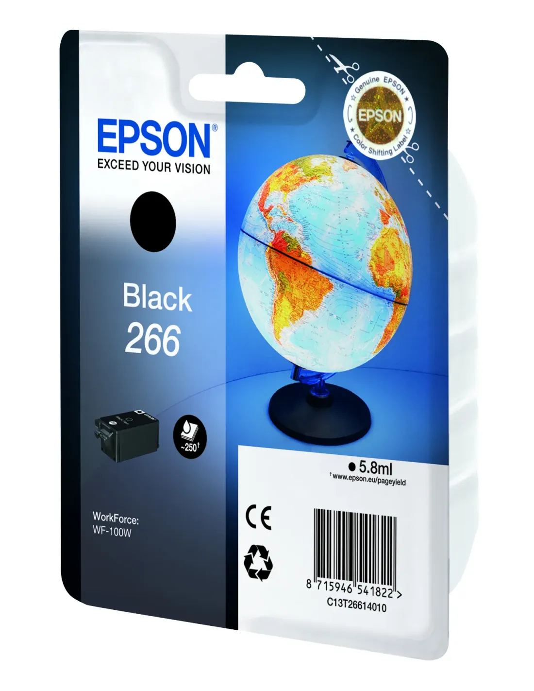 Epson Globe Singlepack Black 266 ink cartridge, Negro, Tinta a base de pigmentos, 5,8 ml, 1 pieza(s), 250 páginas