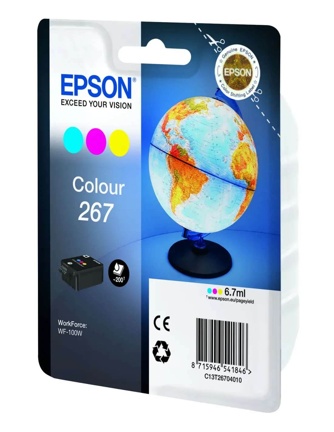 Epson Globe Singlepack Colour 267 ink cartridge, Cian, Magenta, Amarillo, Tinta a base de pigmentos, 6,7 ml, 1 pieza(s), 200 páginas