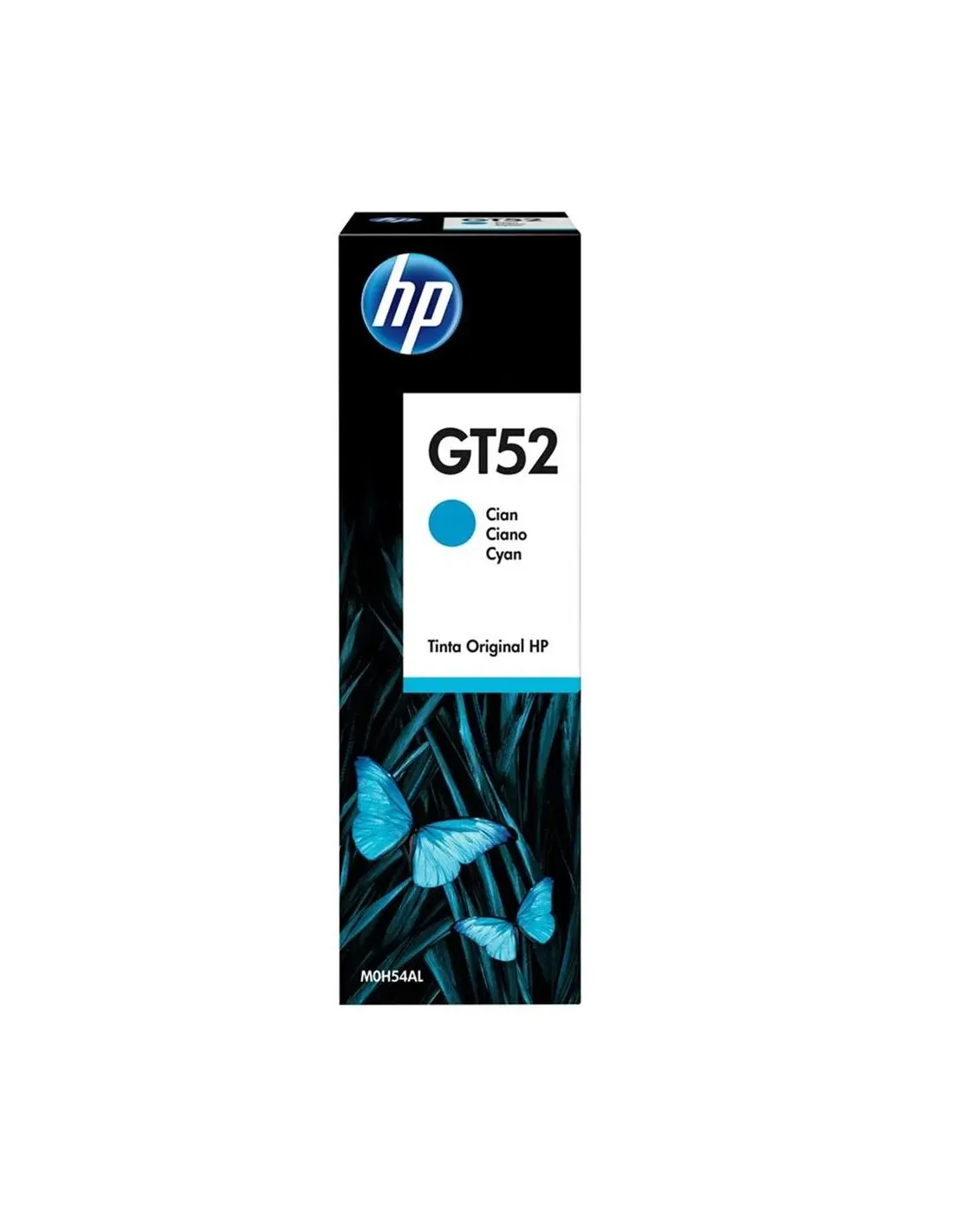 Características de la HP Botella de tinta GT52 CianLa **botella de tinta original HP GT52 Cian** está diseñada para ofrecer una impresión de alta calidad y gran rendimiento en impresoras HP con sistema de tanques. Es una solución eficiente y rentable para usuarios que imprimen en grandes volúmenes, como oficinas, pequeños negocios o entornos educativos. Gracias a su fórmula de tinta de color vibrante, conseguirás documentos y gráficos con colores intensos y definidos.Rendimiento profesional y alta capacidadCon una sola botella de tinta HP GT52 Cian puedes imprimir hasta 8.000 páginas, lo que garantiza una larga duración antes de tener que reemplazarla. Esta autonomía permite un ahorro significativo frente a cartuchos tradicionales, ideal para entornos con alta demanda de impresión.Rendimiento estimado: hasta 8.000 páginasCapacidad de tinta: 70 mlTinta original HP, formulada para un rendimiento constanteCompatibilidad y resultados de calidadEsta botella es compatible exclusivamente con impresoras HP diseñadas para sistemas de tinta recargable. Su tinta color cian produce impresiones de alta definición, con tonos vivos y duraderos, tanto en documentos como en gráficos a color.Compatible con impresoras HP de sistema de tanquesColor de impresión: CianProducto original, garantía de calidad y fiabilidadDiseño práctico y logística eficienteEl diseño del envase permite una recarga fácil y limpia del tanque de tinta. Además, el producto cuenta con una logística optimizada para venta en volumen, con empaques individuales y presentaciones en cajas para distribuidores.Dimensiones del paquete: 47 x 47 x 150 mmPeso del envase individual: 110 gCantidad por caja: 24 unidadesOtras especificacionesCantidad por paquete: 1 unidadColor del producto: BlueCódigo del Sistema de Armonización (SA): 84439990Dimensiones del palé: 1200 x 800 x 1306 mmCantidad total por palé: 2016 unidadesPeso total del palé: 277,6 g
