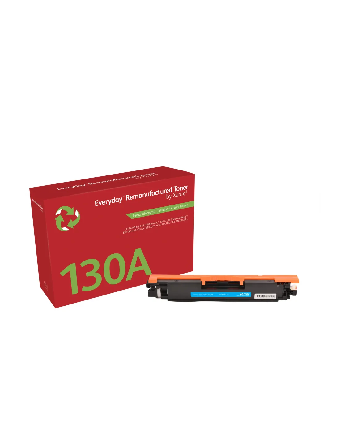 Características del Tóner Xerox Everyday Remanufacturado para HP 130A (CF351A) CianEl tóner **Xerox Everyday Remanufacturado Cian** es una solución económica y ecológica para quienes buscan mantener la calidad de impresión sin comprometer el presupuesto ni el medio ambiente. Diseñado para sustituir al cartucho HP 130A (CF351A), este consumible ofrece un rendimiento fiable, fabricado con materiales aprobados por Xerox que cumplen los estándares más exigentes en seguridad y sostenibilidad.Rendimiento eficiente y color de alta calidadEste cartucho ofrece resultados de impresión en **color cian nítido y uniforme**, ideal para documentos profesionales o uso diario en oficina. Su capacidad estándar garantiza un equilibrio entre coste y durabilidad.Color de impresión: CianTipo: Remanufacturado por XeroxEquivalente a: HP 130A (CF351A)Compromiso con la sostenibilidadEl tóner Xerox Everyday se fabrica utilizando menos recursos naturales, lo que contribuye a reducir la huella de carbono del ciclo de impresión. Además, incluye acceso al programa de reciclaje de Xerox para una gestión responsable del cartucho usado.Diseño ecológico con menor impacto ambientalPrograma de reciclaje de cartuchos incluidoHasta un 45 % de ahorro respecto al cartucho originalGarantía y seguridad certificadasCon respaldo de **garantía de por vida**, este cartucho remanufacturado ofrece tranquilidad total. En caso de cualquier inconveniente, Xerox proporciona **reemplazo gratuito del cartucho**. Además, todos los materiales utilizados cumplen con los estándares de seguridad más estrictos del sector.Garantía de por vida con reemplazo inmediatoFabricado con materiales seguros aprobados por XeroxCompatible con impresoras HP LaserJet Color que usen 130AOtras especificacionesCódigo de producto Xerox: 006R03243Capacidad: Rendimiento estándar