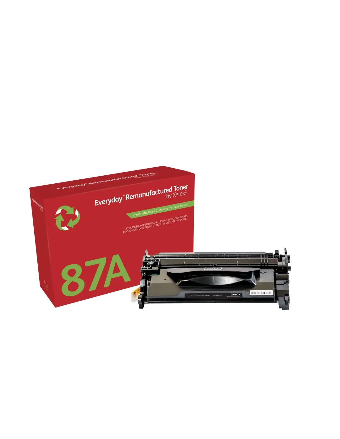 Características del Tóner Xerox Everyday Remanufacturado para HP 87A (CF287A)El tóner **Xerox Everyday Remanufacturado** es una opción inteligente y sostenible para usuarios que desean mantener el rendimiento de sus impresoras HP sin asumir el coste de los consumibles originales. Diseñado para sustituir el modelo HP 87A (CF287A), este cartucho ofrece una excelente relación calidad-precio, manteniendo los estándares de calidad y seguridad de Xerox.Ahorro inteligente sin comprometer resultadosCon el tóner remanufacturado Xerox Everyday, puedes ahorrar entre un 35 % y un 45 % respecto al tóner original, sin renunciar a una impresión fiable y profesional. Ideal para oficinas, entornos administrativos y usuarios que imprimen con frecuencia.Compatibilidad con impresoras HP que utilizan cartuchos 87A (CF287A)Rendimiento equivalente al tóner originalReducción significativa de costes por páginaSostenibilidad como prioridadEste tóner ha sido remanufacturado empleando menos recursos naturales y generando una menor huella de carbono. Es una elección ecológica que cumple con los estándares medioambientales sin comprometer el rendimiento.Proceso de remanufacturación respetuoso con el medio ambienteReciclaje fácil a través del Programa de Reciclaje de Suministros de XeroxReducción del impacto ambiental en cada impresiónCalidad y seguridad garantizadasFabricado con materiales verificados por Xerox Safety, este tóner supera los estándares de seguridad del sector. Además, cuenta con una garantía de por vida que cubre cualquier defecto de funcionamiento.Materiales seguros certificados por XeroxCobertura de reemplazo gratuito en caso de fallosFuncionamiento fiable desde la primera hasta la última páginaCompatibilidad y rendimientoEste cartucho está diseñado para sustituir al HP 87A (CF287A), ofreciendo un rendimiento comparable en cantidad y calidad de impresión. Perfecto para documentos profesionales, informes o uso diario en oficinas.Color: NegroTipo: Tóner remanufacturado de capacidad estándarModelo compatible: HP 87A (CF287A)Otras especificacionesCódigo de producto: 006R03514Serie: Xerox Everyday?Reemplazo directo del cartucho original HP