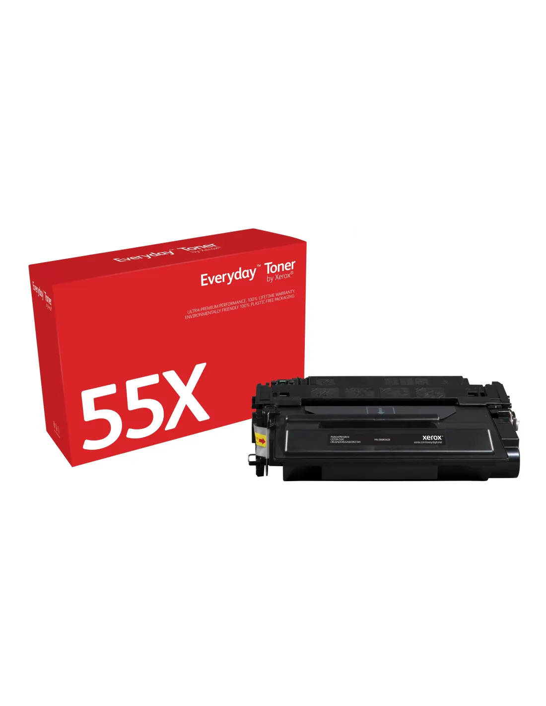 Cartucho de Tóner Xerox Everyday Negro para HP 55X (CE255X)El tóner Xerox Everyday es la alternativa inteligente para quienes buscan rendimiento y ahorro sin renunciar a la calidad. Compatible con impresoras HP LaserJet como la HP LJP3011, este cartucho ofrece una impresión fiable y de alto volumen, ideal tanto para entornos de oficina como para usuarios profesionales. Con un rendimiento equivalente al modelo original HP 55X (CE255X), garantiza negros intensos, textos nítidos y una excelente definición en cada página.Ahorro inteligente sin sacrificar calidadCon la gama Xerox Everyday, puedes reducir significativamente tus costes de impresión sin perder prestaciones. Este modelo permite un ahorro estimado del 50 % al 60 % frente a los cartuchos originales HP, manteniendo un nivel de calidad profesional.Compatible con HP 55X (CE255X)Alto rendimiento para entornos exigentesAhorro notable frente al cartucho originalCalidad fiable en cada impresiónDesarrollado por Xerox, este tóner garantiza negros profundos, textos definidos y gráficos de alta precisión. Ideal para documentos profesionales, informes o materiales que requieren alta legibilidad y presentación cuidada.Negros intensos y líneas bien definidasResultados consistentes desde la primera hasta la última páginaPerfecto para documentos profesionalesCompatibilidad asegurada y sin complicacionesEl cartucho está diseñado para ofrecer compatibilidad total con modelos HP seleccionados, asegurando un funcionamiento fluido y sin errores. Además, cuenta con garantía de por vida y posibilidad de reposición gratuita en caso de fallo.Compatible con HP LaserJet P3011 y otras series con CE255XInstalación sencilla y funcionamiento estableCartucho de repuesto gratuito si surge algún problemaCompromiso medioambientalXerox facilita un programa de reciclaje de consumibles sin costes adicionales, ayudando a reducir el impacto ambiental de tus impresiones.Programa de reciclaje de tóneres XeroxFácil devolución de cartuchos usadosSolución sostenible para tu entorno de trabajoOtras especificacionesReferencia: 006R03628Color: NegroSerie: Xerox Everyday?Tipo: Tóner compatible de alto rendimiento