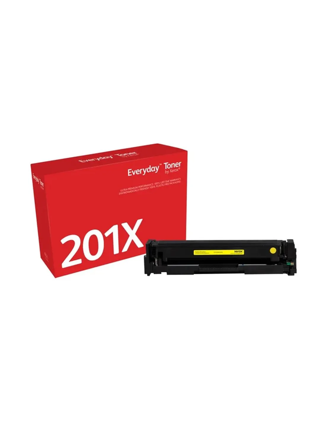 Características del Toner Everyday? Amarillo Xerox Compatible con HP 201X (CF402X)El **tóner amarillo Xerox Everyday?** es la opción perfecta para quienes buscan una solución de impresión **económica y confiable** sin comprometer la calidad. Diseñado para sustituir al HP 201X (CF402X), este cartucho de alto rendimiento ofrece resultados profesionales en impresoras HP Color LaserJet compatibles, con un importante **ahorro de coste por página**.Ahorro inteligente sin perder calidadEste tóner permite reducir significativamente los costes de impresión, manteniendo un nivel de calidad que cumple con las exigencias de un entorno profesional o doméstico de alto volumen.Ahorro de entre un 50 % y 60 % respecto a cartuchos originalesColores vibrantes, negros profundos y líneas definidasCompatible con una amplia gama de impresoras HPFiabilidad y compromiso medioambientalEl cartucho está respaldado por la garantía de calidad de Xerox, que incluye reemplazo gratuito en caso de fallos. Además, se integra en el programa de reciclaje de consumibles de Xerox, facilitando una gestión responsable de residuos.Protección de por vida: cartucho de repuesto sin coste si se detecta algún problemaReciclaje fácil y sin complicacionesFabricado bajo estándares de calidad estrictosCompatibilidad garantizadaCompatible con varios modelos de impresoras HP Color LaserJet Pro, este cartucho se instala fácilmente y está listo para funcionar sin errores ni ajustes adicionales.HP Color LaserJet Pro M252HP Color LaserJet Pro M274HP Color LaserJet Pro M277Otras especificacionesModelo: 006R03694Color: AmarilloTipo: Compatible con HP 201X (CF402X)Formato: Alto rendimientoMarca: Xerox Everyday?
