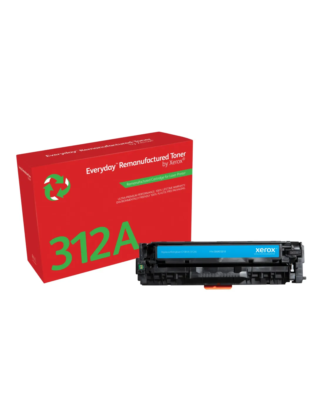 Características del Tóner Xerox Everyday Cian para HP 312A (CF381A)El **tóner remanufacturado Xerox Everyday** es la opción ideal para empresas y usuarios que buscan una solución de impresión eficiente, sostenible y económica sin comprometer la calidad. Diseñado para impresoras **HP Color LaserJet Pro MFP M476**, este cartucho cian ofrece un rendimiento fiable y un importante ahorro frente a los consumibles originales.Impresión fiable con ahorro garantizadoEste cartucho Xerox ofrece resultados consistentes y una excelente relación calidad-precio. Con un rendimiento estándar, es ideal para entornos de oficina que necesitan impresiones profesionales y control de costes.Compatible con HP 312A (CF381A)Color: CianAhorro de entre un 35 % y un 45 % frente a tóneres originalesCompromiso con la sostenibilidadGracias a su proceso de remanufacturación, el tóner Xerox Everyday ayuda a reducir el impacto medioambiental. Requiere menos recursos para su producción y cuenta con un programa de reciclaje sencillo y eficaz.Tóner remanufacturado con menor huella de carbonoPrograma de reciclaje de cartuchos usado sin complicacionesFabricado con materiales aprobados por Xerox SafetyTranquilidad y garantía totalIncluye cobertura de por vida, con reemplazo gratuito del cartucho en caso de cualquier incidencia. Una garantía pensada para ofrecer seguridad en cada impresión.Protección completa durante toda la vida útil del productoSoporte directo por parte de XeroxCompatibilidadEste cartucho es compatible con los siguientes modelos de impresora:HP Color LaserJet Pro MFP M476Otras especificacionesReferencia Xerox: 006R03818Rendimiento: EstándarLínea: Xerox Everyday?