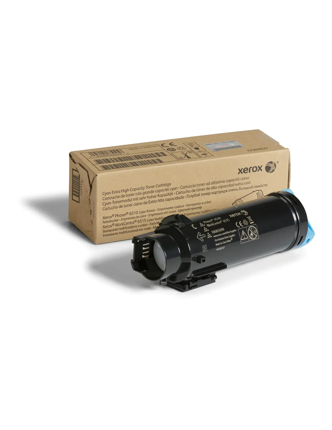 Cartucho de Tóner Xerox WorkCentre 6515 Cián Gran CapacidadEl cartucho de tóner Xerox original en color cián, con gran capacidad de impresión, está diseñado para ofrecer resultados profesionales y un rendimiento eficiente en entornos de trabajo que requieren alta productividad. Compatible con una amplia gama de impresoras Xerox Phaser y WorkCentre, este cartucho garantiza una calidad de impresión constante y colores vivos en cada documento.Rendimiento profesional con gran capacidadIdeal para oficinas que imprimen grandes volúmenes, este cartucho de tóner permite mantener la productividad sin interrupciones frecuentes por reemplazo. Su formulación avanzada asegura una cobertura uniforme y textos nítidos.Rendimiento de hasta 4.300 páginasFormato de alta capacidad para mayor autonomíaColor cián para impresiones a todo color vibrantesCompatibilidad con dispositivos XeroxEste cartucho ha sido desarrollado específicamente para modelos de impresoras Xerox, asegurando una integración perfecta y evitando problemas de reconocimiento o fallos de impresión. Ideal para quienes buscan fiabilidad y calidad original.Compatible con Xerox Phaser 6510 (modelos: DN, DNI, DNM, N, V/DNI, V/DNIS, V/DNS, V/NS)Compatible con Xerox WorkCentre 6515 (modelos: DN, DNI, DNM, N, V/DNIS, V/DNS, V/NS, V/DN, V/DNI, V/DNM, V/N)Cartucho original XeroxDiseño compacto y embalaje optimizadoSu embalaje está pensado para facilitar el almacenamiento y la manipulación en entornos profesionales, sin ocupar espacio innecesario.Dimensiones del embalaje: 18.80 × 6.10 × 6.60 cmPeso del paquete: 158,7 gFácil instalación y reemplazo seguroOtras especificacionesTecnología de impresión: LáserTipo de consumible: Cartucho de tónerCantidad incluida: 1 unidad