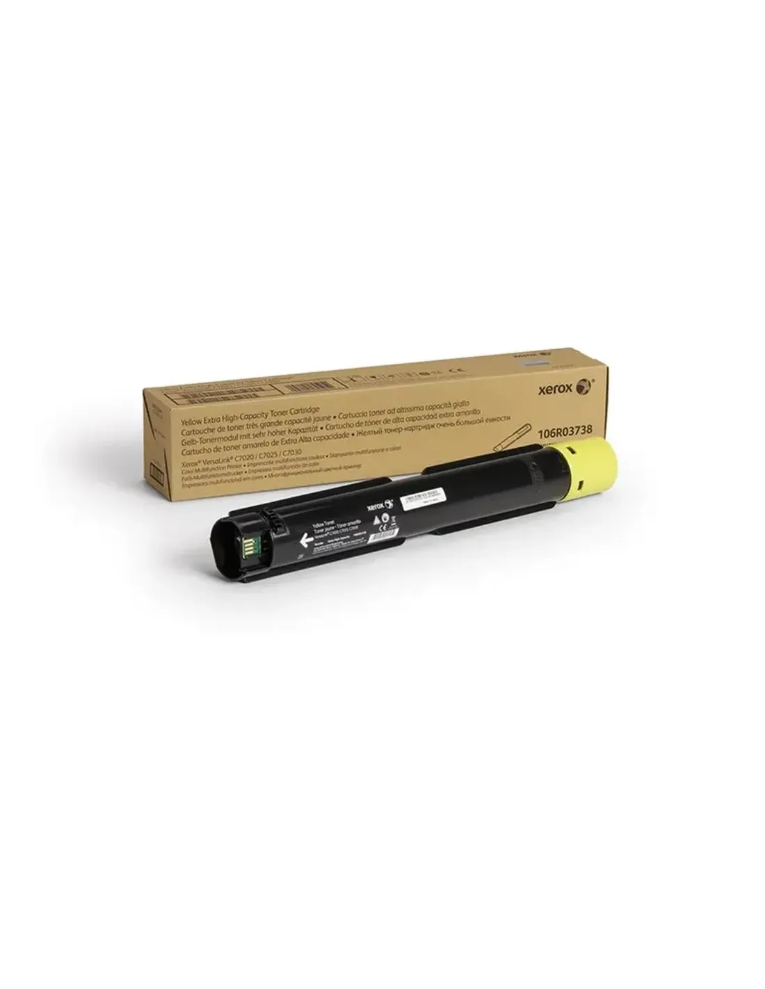 Características del Xerox Toner Amarillo Metered 106R03738 para VersaLink C7020/C7025/C7030El **tóner amarillo Xerox 106R03738** está diseñado para garantizar una impresión profesional y de alta calidad en los equipos multifunción **Xerox VersaLink de la serie C7000**. Este cartucho es ideal para entornos empresariales que requieren un alto volumen de impresión con resultados uniformes y precisos, especialmente en documentos a color donde la fidelidad cromática es esencial.Alto rendimiento para entornos exigentesCon una capacidad estimada de hasta 16.500 páginas, este tóner de capacidad extra ofrece un excelente equilibrio entre coste por página y rendimiento. Su fórmula está cuidadosamente desarrollada para ofrecer una calidad de imagen constante en cada impresión, desde la primera hasta la última hoja.Capacidad extra: hasta 16.500 páginas*Color: Amarillo (Yellow)Tipo: Tóner original MeteredCompatibilidad garantizada con equipos XeroxEste cartucho está optimizado para trabajar de forma conjunta con los equipos Xerox, asegurando una integración perfecta y sin errores. Usar consumibles originales Xerox garantiza no solo la calidad de impresión, sino también la durabilidad del equipo.Compatible con: Xerox VersaLink C7020Compatible con: Xerox VersaLink C7025Compatible con: Xerox VersaLink C7030Fiabilidad y calidad original XeroxFormulado y probado por Xerox, este tóner cumple los estándares más altos de rendimiento y fiabilidad. Su uso asegura impresiones sin manchas, colores vivos y textos definidos. Además, ayuda a mantener la garantía y la vida útil del dispositivo.Fórmula de tóner exclusiva XeroxImpresión consistente página tras páginaIdeal para impresión profesional en colorOtras especificacionesCódigo del fabricante: 106R03738Serie de impresoras: Xerox VersaLink C7000 SeriesTipo de producto: Cartucho de tóner de capacidad extra