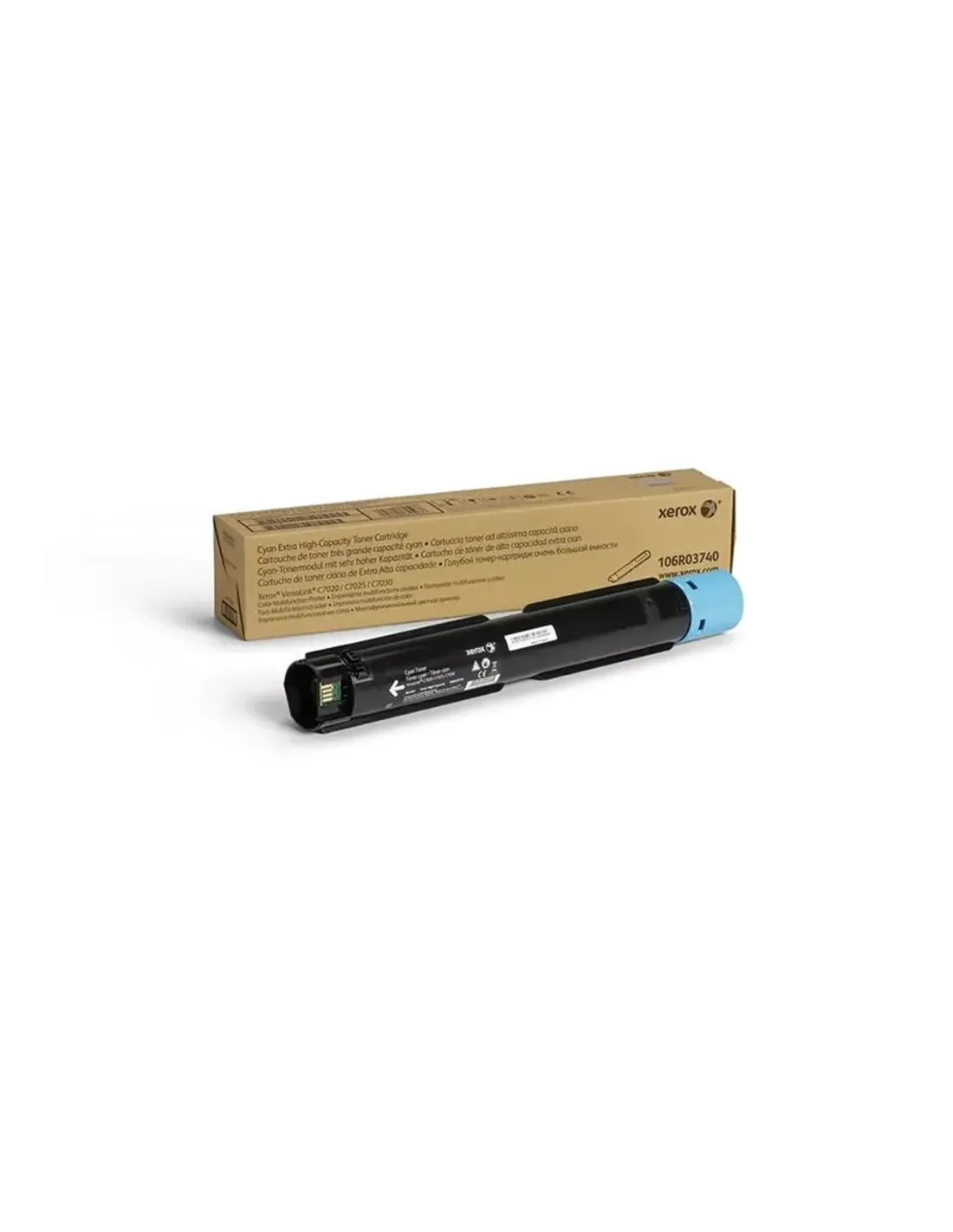 Cartucho de Tóner Cian Xerox 106R03740 para VersaLink C7020/C7025/C7030El tóner cian Xerox 106R03740 está diseñado para ofrecer un rendimiento profesional en equipos multifunción a color de la serie VersaLink C7000. Gracias a su alta capacidad de impresión y formulación específica, este cartucho garantiza resultados consistentes, con colores vivos y nitidez página tras página. Es la opción ideal para entornos de trabajo que requieren productividad elevada y calidad de imagen constante.Alto rendimiento para entornos exigentesCon una capacidad extra de hasta 16.500 páginas, este tóner cian es perfecto para oficinas que manejan grandes volúmenes de impresión. Su fórmula original Xerox asegura un flujo de trabajo eficiente y sin interrupciones.Rendimiento estimado: 16.500 páginasColor: CianTipo: Cartucho de tóner original de alta capacidad (Metered)Compatibilidad garantizada con equipos VersaLinkEste consumible ha sido desarrollado para integrarse perfectamente con impresoras y multifuncionales de la línea Xerox VersaLink, optimizando tanto el rendimiento como la durabilidad del equipo. Su instalación es sencilla y segura.Compatible con: Xerox VersaLink C7020Compatible con: Xerox VersaLink C7025Compatible con: Xerox VersaLink C7030Calidad de imagen profesional con garantía XeroxLa tecnología de impresión de Xerox y sus consumibles originales trabajan en conjunto para ofrecer siempre la mejor calidad de imagen. Confiar en consumibles originales evita problemas de compatibilidad y garantiza una impresión precisa y uniforme.Tóner original, formulado y probado por XeroxColores vivos y uniformes en cada impresiónEvita daños en el equipo por uso de cartuchos genéricosOtras especificacionesCódigo del fabricante: 106R03740Serie: VersaLink C7000Tipo de producto: Consumible - TónerVersión: Metered