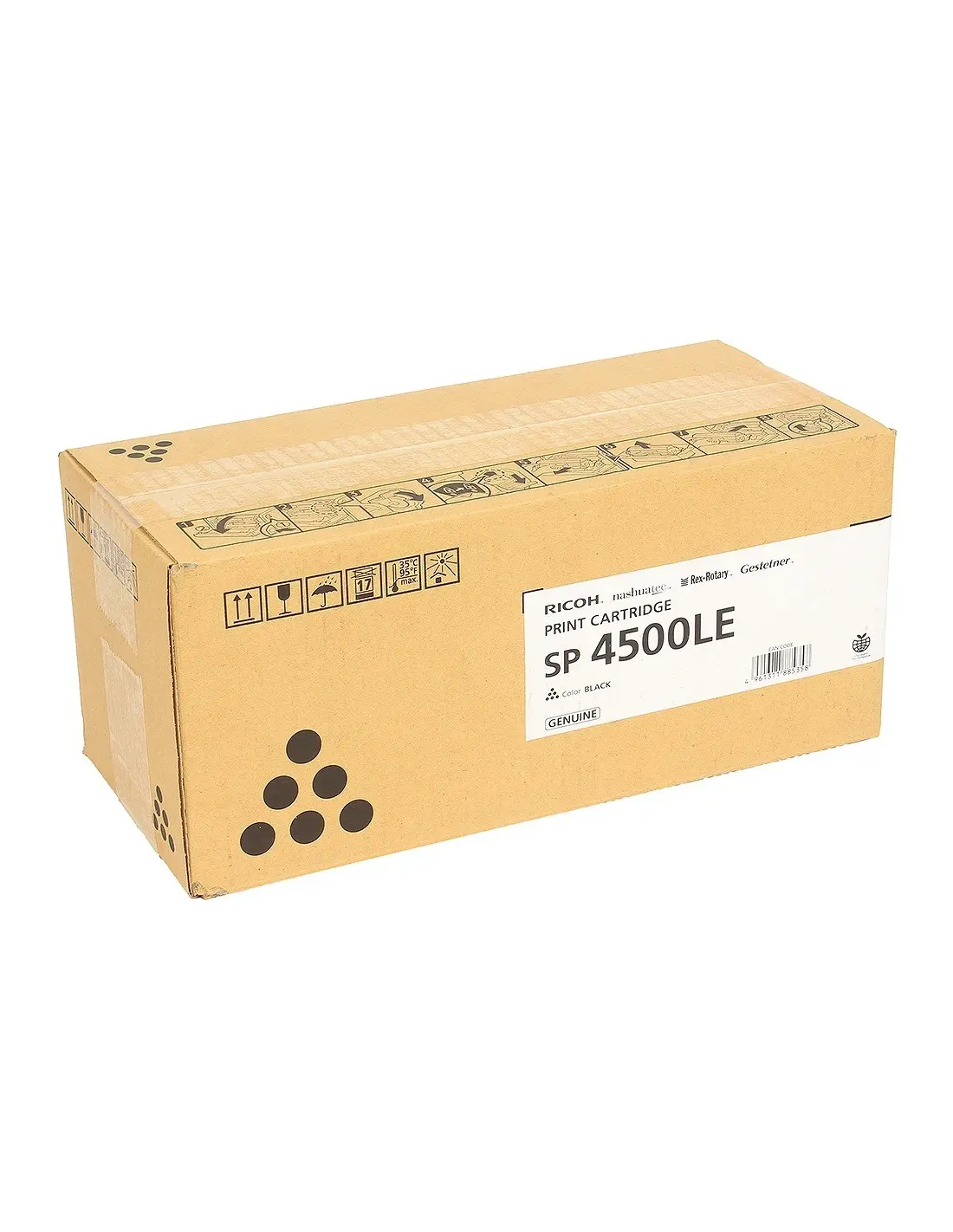 Características del Tóner Negro Ricoh SP-4500LE (Original)El tóner negro **Ricoh SP-4500LE** está diseñado para ofrecer una impresión profesional, fiable y de alta calidad en una amplia gama de impresoras y equipos multifunción Ricoh. Es la opción ideal para oficinas que buscan **resultados uniformes y precisos**, garantizando un rendimiento constante desde la primera hasta la última página.Calidad original para resultados profesionalesAl ser un tóner **original de Ricoh**, está fabricado bajo los estándares más exigentes de calidad y compatibilidad. Esto asegura una impresión sin problemas de mantenimiento, con textos nítidos y gráficos bien definidos en cada uso.Tóner original Ricoh con garantía de calidadCertificación ISO/IEC 19752 para rendimiento de impresiónColor de impresión: negroRendimiento y compatibilidad garantizadosCon una capacidad de hasta **3000 páginas**, este cartucho está optimizado para ofrecer una alta productividad en entornos de trabajo exigentes. Además, es compatible con una amplia gama de impresoras y multifuncionales Ricoh, facilitando la gestión de consumibles en la oficina.Rendimiento aproximado: 3000 páginasCompatible con modelos: SP 4500LE, SP 4500DN, SP 3600DN, SP 3600SF, SP 4510DN, SP 4510SF, SP 3610SFCantidad por paquete: 1 unidadOtras especificacionesMarca compatible: RicohTipo de consumible: Tóner originalCertificación de rendimiento: ISO/IEC19752