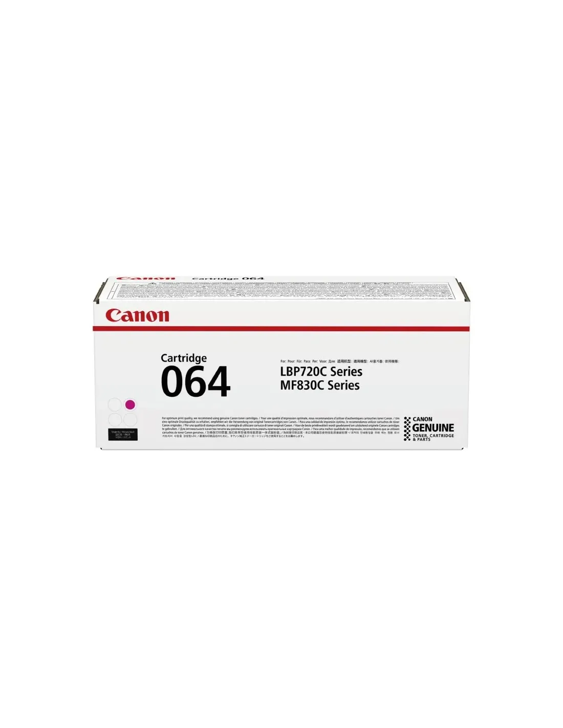 CARTUCHO DE TONER CANON 064 MAGENTA REF. 4933C001Cartucho de tóner Canon 064 color Magenta, con un rendimiento de 5.000 páginas.Consumible válido para las siguientes impresoras Canon:- CANON I-SENSYS LBP722CDW