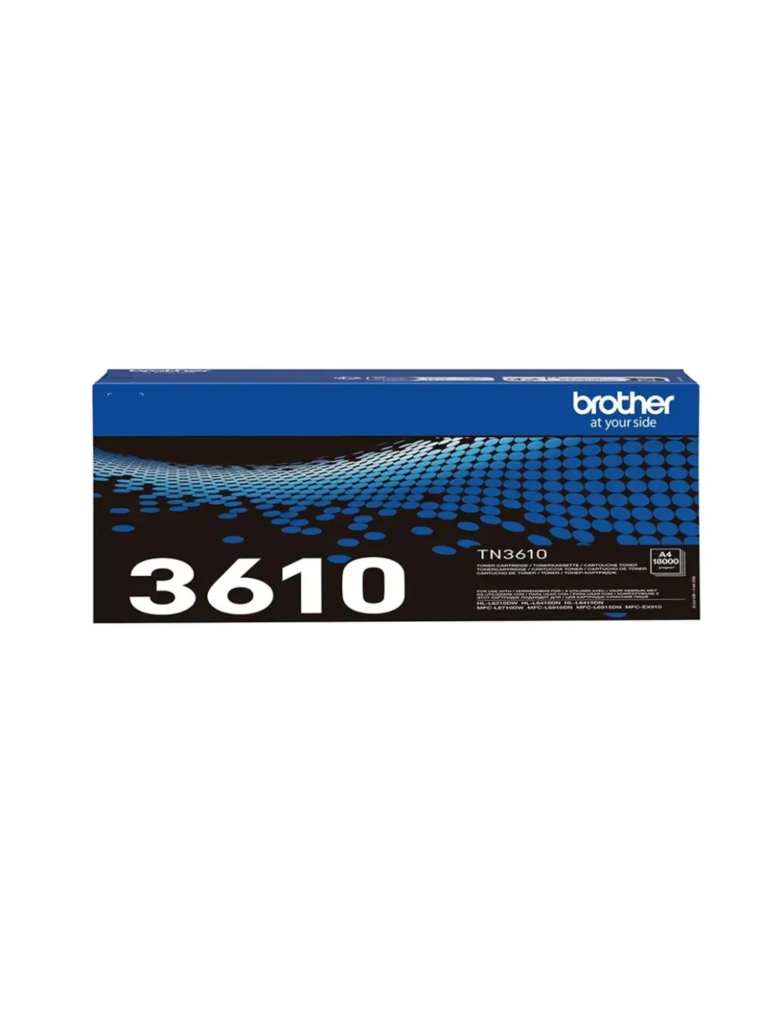 Descripción del productoImprime hasta 18.000 páginas de acuerdo con ISO/IEC 19752Cartucho de tóner negro Brother original de alta calidad.Diseñado por expertos y probado rigurosamente para mantener su impresora funcionando al máximoEl uso de consumibles Brother originales protege su garantíaAcerca de este producto:El tóner Brother TN-3610 ha sido diseñado por expertos para garantizar que sus impresiones se entreguen rápidamente y con perfecta claridad. Los consumibles originales como el TN-3610 ofrecen una mejorrelación calidad-precio, protegen su impresora y protegen su garantía.Brother considera el impacto medioambiental en cada etapa del ciclo de vida de sus impresoras, reduciendo los residuos en los vertederos. Todo el hardware y los tóneres de Brother están diseñados paratener el menor impacto posible en el medio ambiente.Tóner original Brother TN-3610: siempre vale la pena.