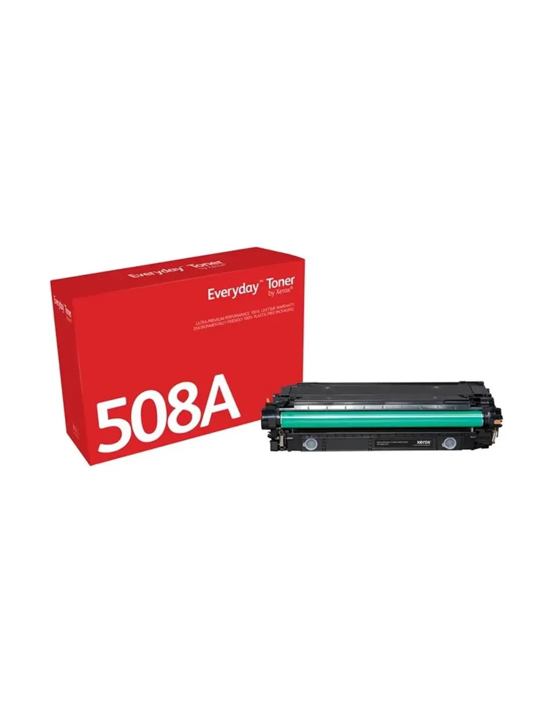 Características del Tóner Xerox Everyday Negro para HP 508A (CF360A)El **tóner Xerox Everyday Negro** es una alternativa de alto rendimiento y gran fiabilidad al cartucho HP 508A original. Diseñado para usuarios que buscan **ahorrar costes sin renunciar a la calidad de impresión**, este cartucho compatible ofrece resultados profesionales en cada página, ideal tanto para oficinas como para entornos empresariales con alto volumen de impresión. Además, cuenta con el respaldo de **garantía de por vida** y un programa de reciclaje que facilita su devolución responsable.Ahorro sin comprometer calidadCon la gama Xerox Everyday, puede disfrutar de un ahorro significativo frente al consumible original sin sacrificar el rendimiento. Cada cartucho está fabricado siguiendo estándares estrictos para garantizar una impresión nítida, fiable y duradera.Ahorro de entre un 50 % y un 60 % respecto al cartucho originalCalidad constante: negros profundos y detalles precisosRendimiento equivalente al cartucho HP 508A estándarCompatibilidad y fiabilidad aseguradaCompatible con una amplia gama de impresoras HP Color LaserJet Enterprise, este tóner ofrece una integración perfecta con su dispositivo, garantizando resultados sin errores ni interrupciones. Ideal para documentos profesionales y materiales internos.Compatible con: HP Color LaserJet Enterprise M552, M553 y M577Instalación sencilla y detección automática por la impresoraCartucho de repuesto gratuito en caso de incidenciaCompromiso con el medio ambienteEste producto forma parte del Programa de Reciclaje de Consumibles de Xerox, que le permite devolver fácilmente los cartuchos usados para su tratamiento adecuado. Una solución rentable y respetuosa con el entorno.Reciclaje gratuito y sin complicacionesEmbalaje sostenible y fácil de gestionarOtras especificacionesCódigo del fabricante: 006R03793Modelo compatible: HP 508A (CF360A)Color: NegroTipo de rendimiento: EstándarMarca: Xerox Everyday?