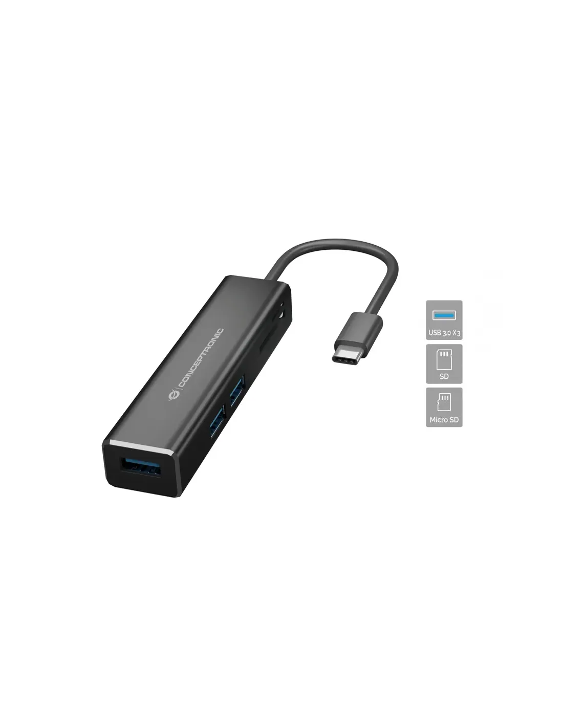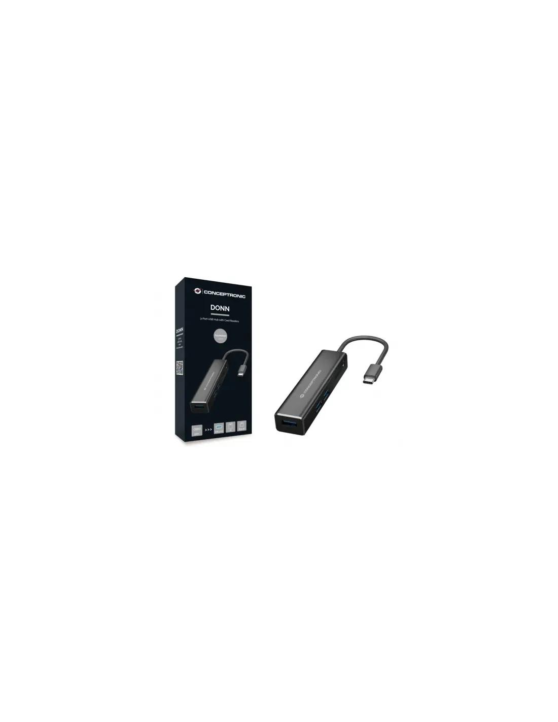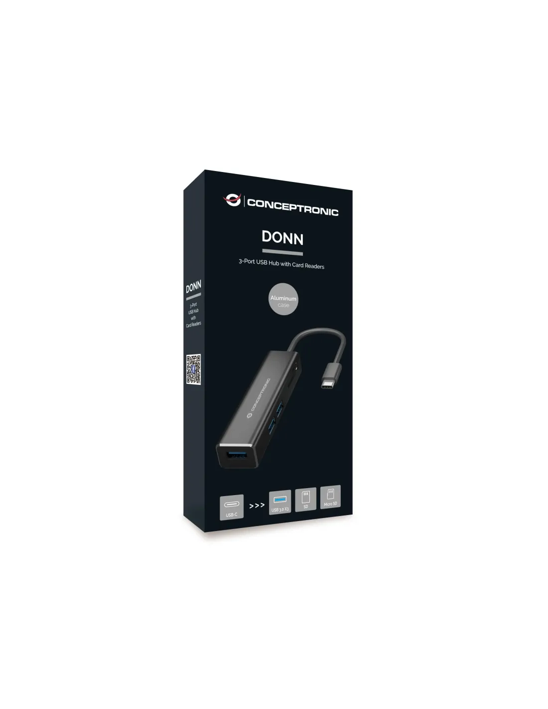 Conceptronic DONN08B, USB 3.2 Gen 1 (3.1 Gen 1) Type-C, Negro, MicroSD (TransFlash), SD, SDHC, SDXC, USB 3.2 Gen 1 (3.1 Gen 1) Type-A, Aluminio, China