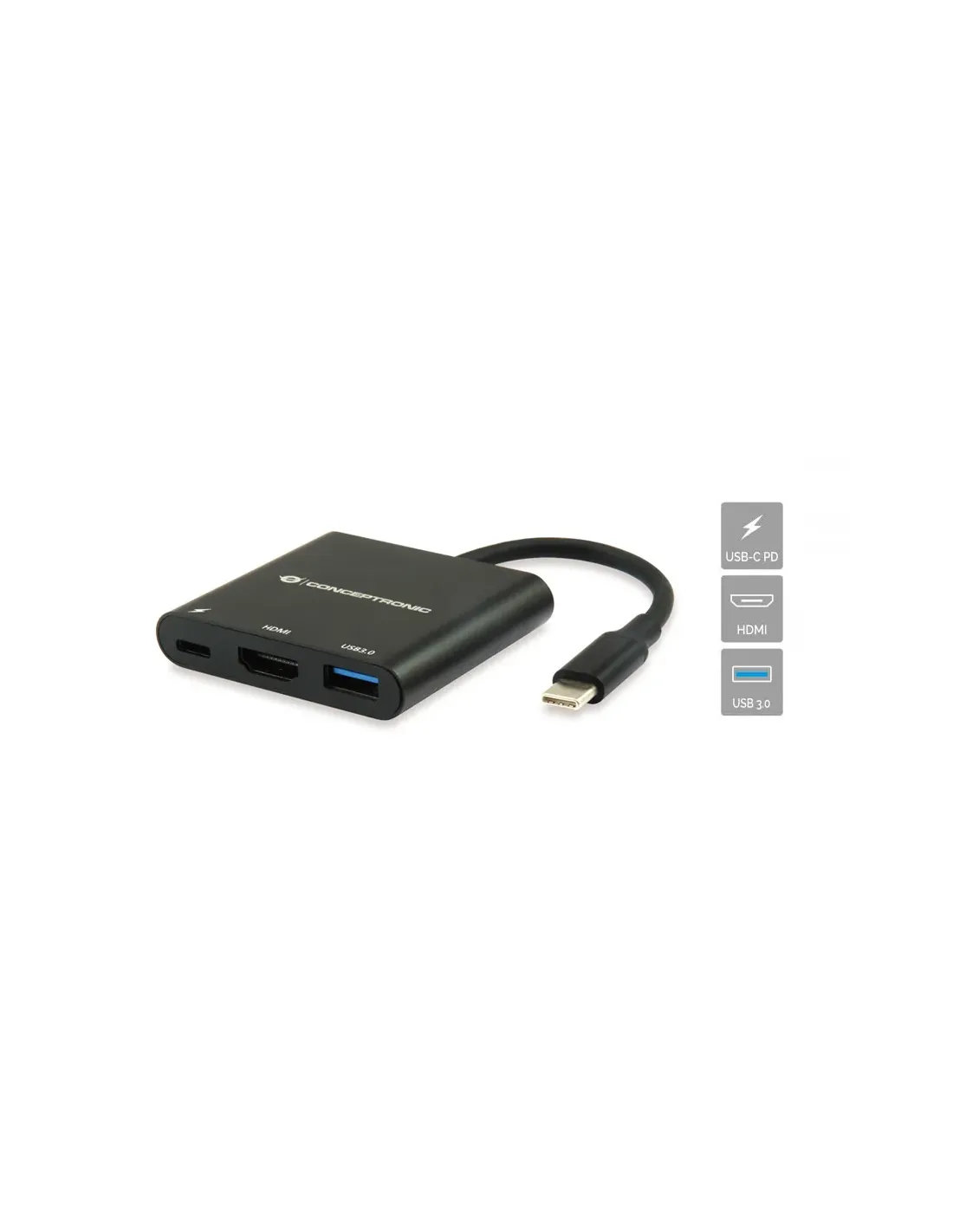 Conceptronic DONN01B. Interfaz de host: USB 3.2 Gen 1 (3.1 Gen 1) Type-C, Entrega de energía USB (USB Power Delivery) de hasta: 60 W. Color del producto: Negro, Interfaces de concentradores: HDMI, USB 3.2 Gen 1 (3.1 Gen 1) Type-A, USB 3.2 Gen 1 (3.1 Gen 1) Type-C, País de origen: China. Tipo de fuente de alimentación: USB. Ancho: 51 mm, Profundidad: 58,5 mm, Altura: 11,6 mm. Cantidad por paquete: 1 pieza(s), Ancho del paquete: 125 mm, Profundidad del paquete: 20 mm