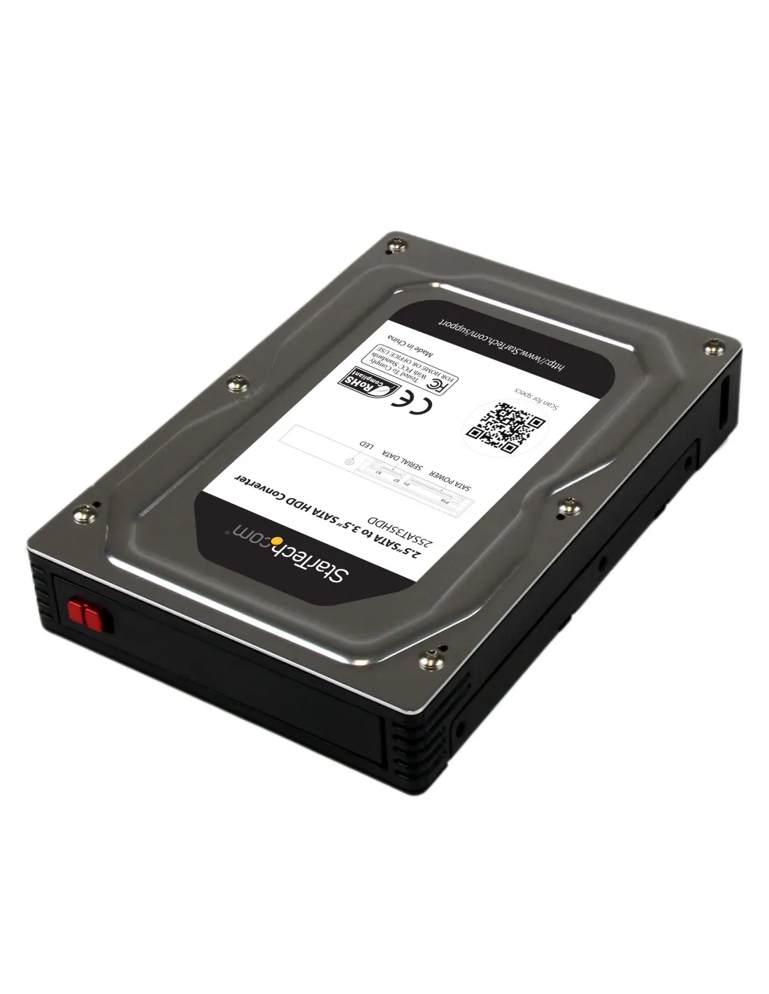 StarTech.com Adaptador Caja para Discos Duros o SSD de 2,5" a 3,5" SATA - Convertidor para Disco Duro Externo para Unidades de hasta 12,5mm de Altura, 8,89 cm (3.5"), Bandeja para disco duro, Negro, Plata, 2.5", Aluminio, Plástico, 12.5 mm