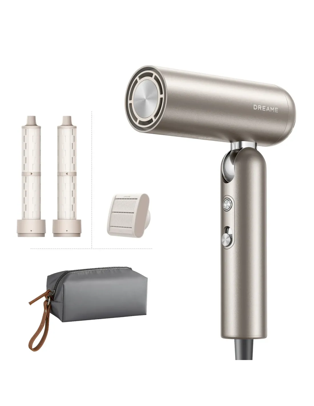 Dreame Pocket Neo. Velocidad del motor: 110000 RPM, Velocidad del aire: 70 m/s, flujo de aire: 50 m³/h. Color del producto: Oro, Coloración de superficie: Monocromo, Longitud del cable: 1,5 m. Potencia: 1300 W, Voltaje de entrada AC: 220 - 240 V, Frecuencia de entrada AC: 50/60 Hz. Ancho: 50 mm, Profundidad: 145 mm, Altura: 201 mm. Cantidad por paquete: 1 pieza(s), Ancho del paquete: 556 mm, Profundidad del paquete: 315 mm