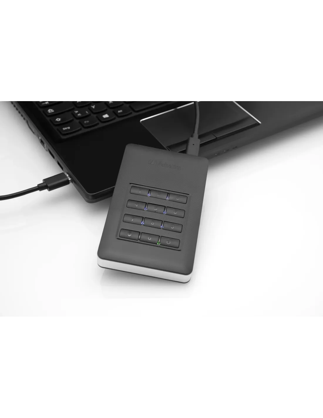 Verbatim Disco duro portátil y seguro Store n Go de 2 TB con teclado, 2 TB, 3.2 Gen 1 (3.1 Gen 1), Negro, Plata