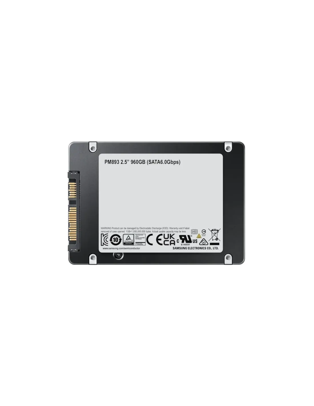 Samsung PM893. SDD, capacidad: 960 GB, Factor de forma de disco SSD: 2.5", Velocidad de lectura: 550 MB/s, Velocidad de escritura: 520 MB/s, Velocidad de transferencia de datos: 6 Gbit/s, Componente para: Servidor/estación de trabajo