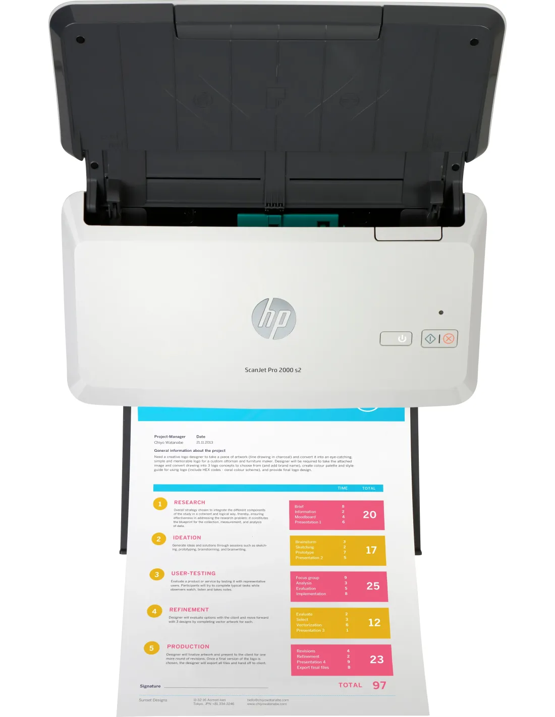 HP Scanjet Pro 2000 s2 Sheet-feed Scanner, 216 x 3100 mm, 600 x 600 DPI, 3500 páginas, Escáner alimentado con hojas, Negro, Blanco, CMOS CIS