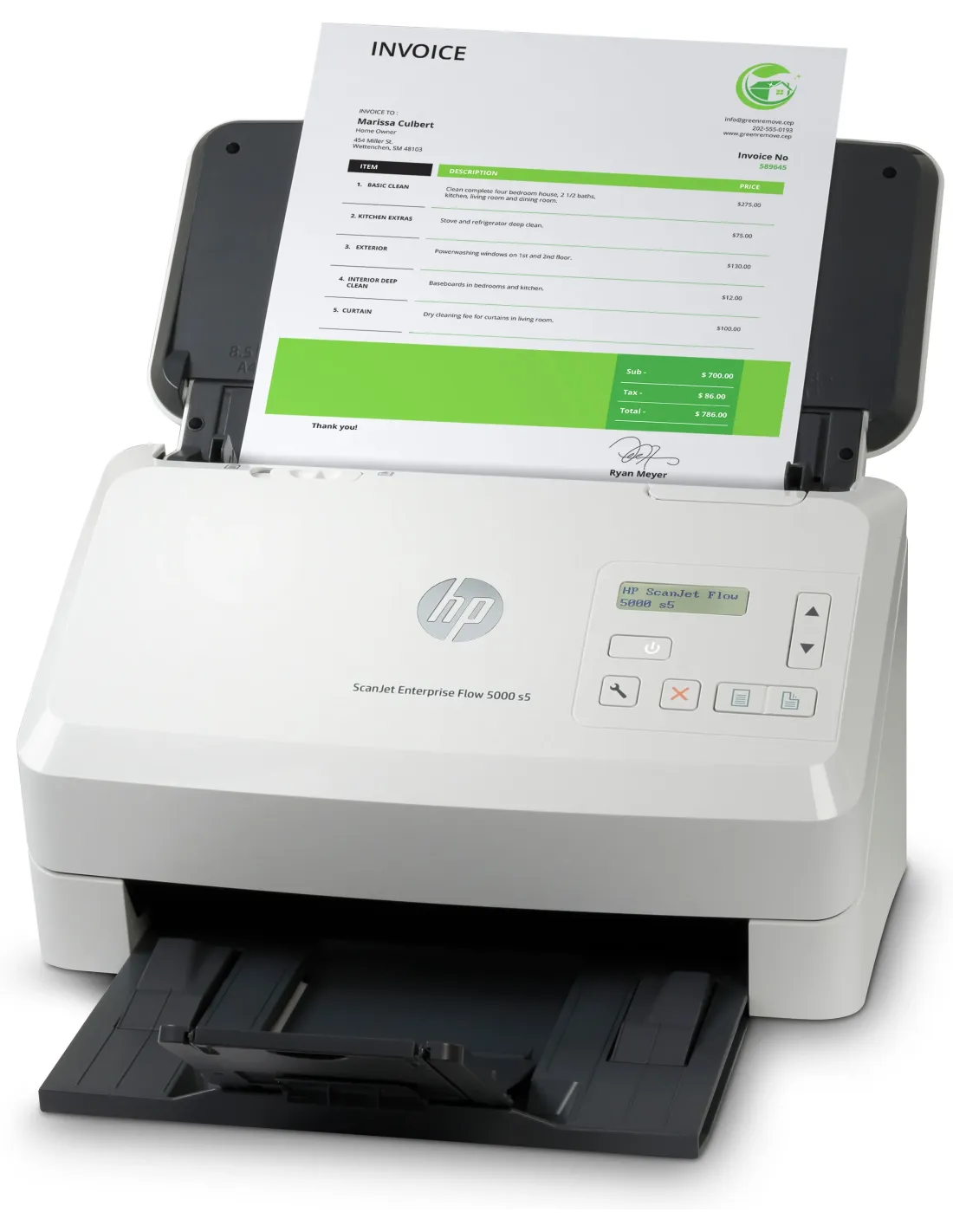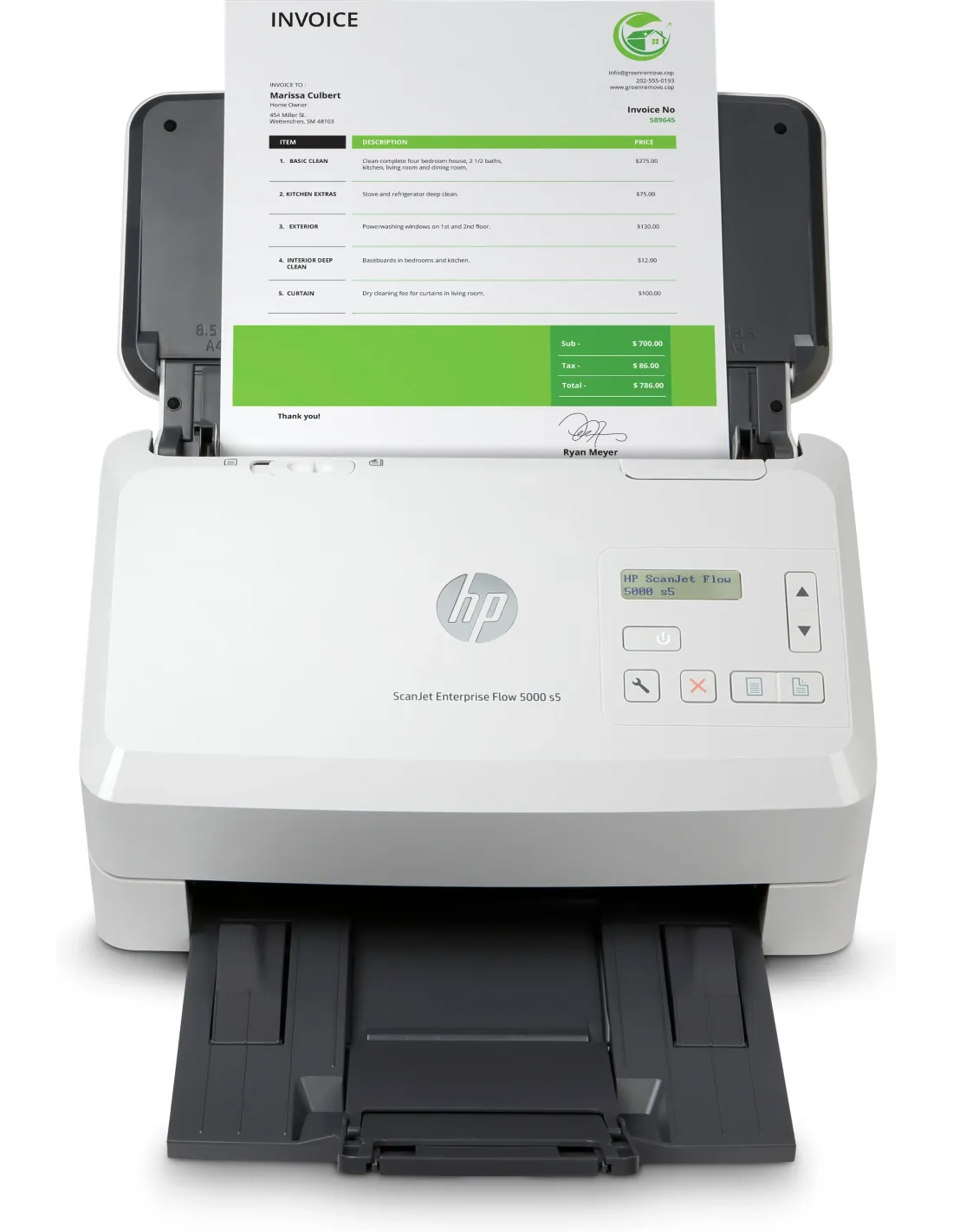 HP Scanjet Enterprise Flow 5000 s5, 216 x 3100 mm, 600 x 600 DPI, Escáner alimentado con hojas, Blanco, CMOS CIS, 7500 páginas