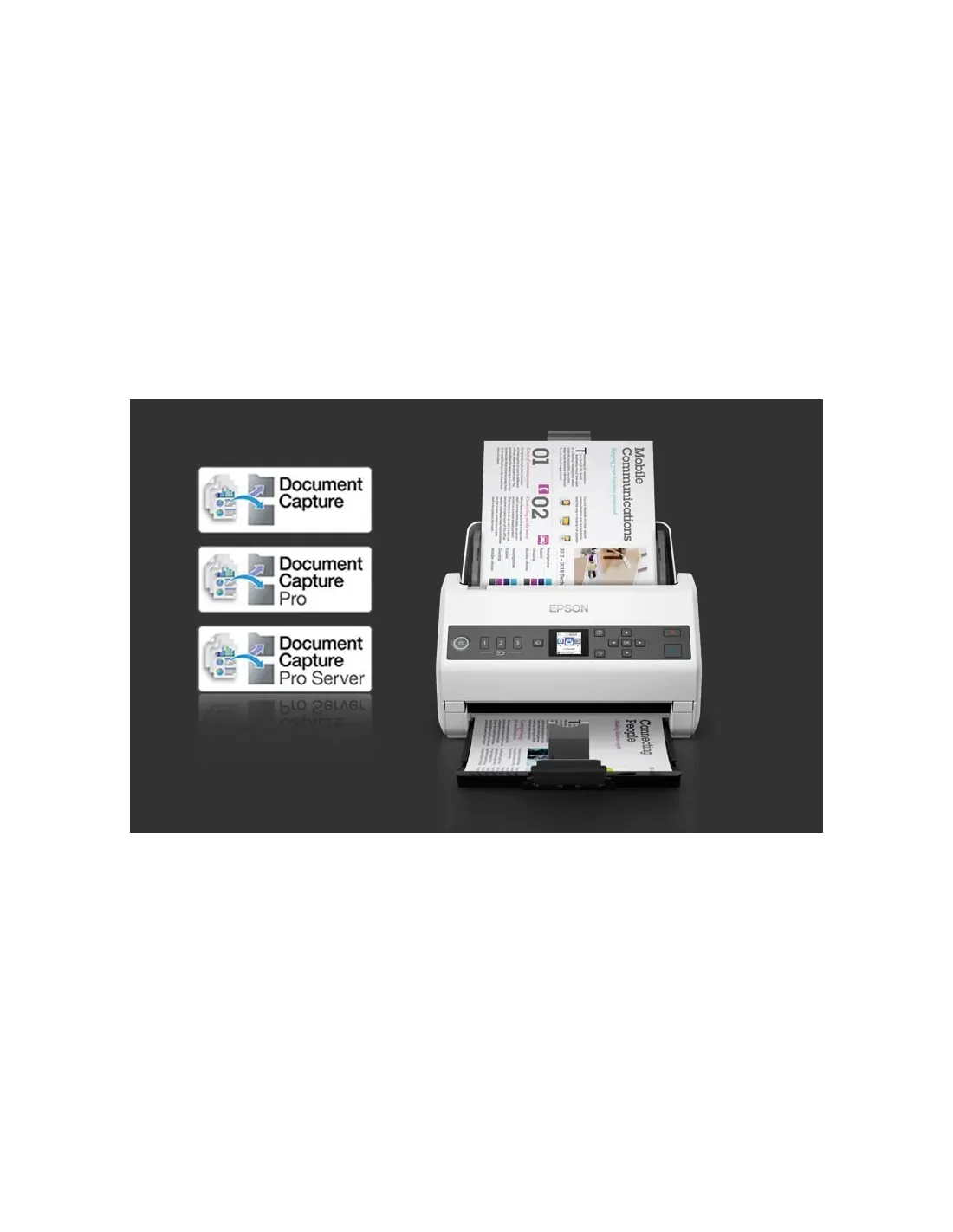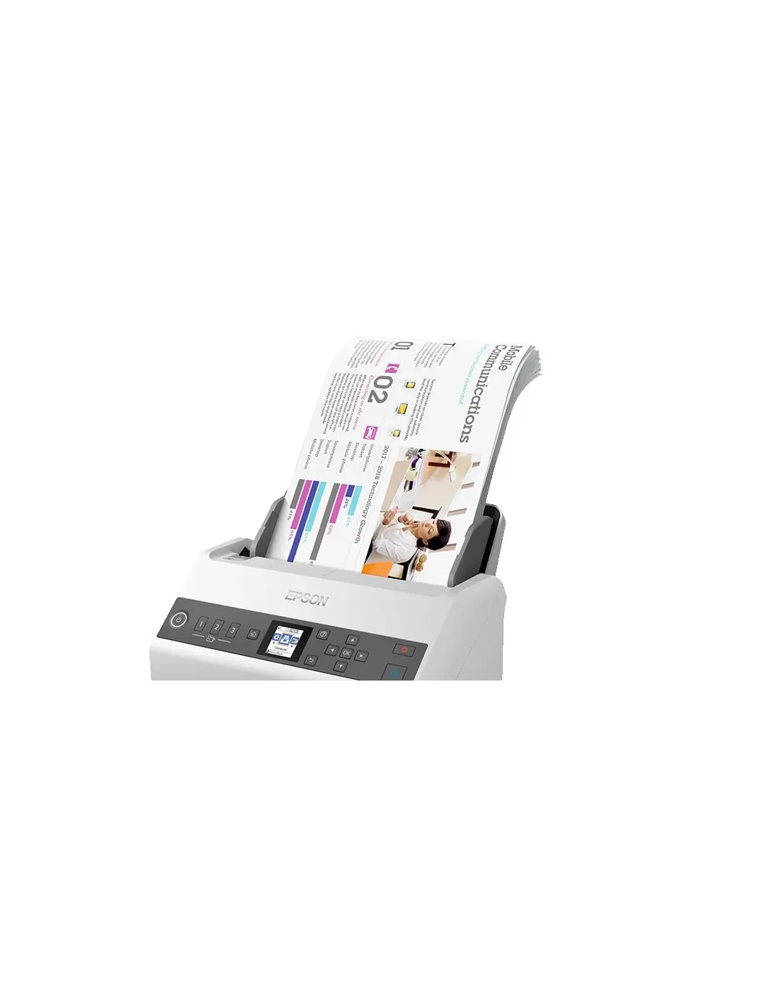 WorkForce DS-730NConecta tu empresa con este escáner con red independiente, asequible yextremadamente eficiente. Es la opción inteligente para la gestión dedocumentos profesionales, que incluye la opción de escanear y enviar adiversos destinos (departamentos o cuentas individuales) con solo tocar unbotón, lo que te permitirá capturar, convertir y distribuir informaciónescaneada dentro de tu empresa de forma sencilla.Intercambio sencilloCon un espacio de oficina limitado, la reducción del número de dispositivosespecíficos es crucial. Con un panel de control fácil de usar con pantallaLCD en color de 1,44 pulgadas incorporada, puedes elegir la tarea correctay enviar documentos al destino correcto de inmediato, poniendo losarchivos digitales a disposición de los departamentos y otras agencias.Escanea y envía a correos electrónicos, carpetas, FTP, SFTP, servicios en lanube o aplicaciones de Microsoft con solo pulsar un botón.Alto rendimientoGracias a un alimentador automático de documentos de 100 hojas de altacapacidad, se reduce la intervención del usuario, lo que te permiteescanear gran cantidad de documentos de una sola vez. Con velocidadesde escaneado de doble cara de hasta 40 ppm/80 ipm, los trabajos de granvolumen se pueden capturar de forma rápida y sencilla como un únicoarchivo.Funciones inteligentesToma el control gracias a una gama de funciones inteligentes, incluidossensores ultrasónicos y una función de protección del papel. El modo lentopermite capturar soportes de impresión difíciles reduciendo la velocidad delrodillo sin aumentar el tamaño de los archivos. La función de omisión dedetección de alimentación doble permite procesar rápidamentedocumentos difíciles, como sobres y pósits.Protección de documentos importantesLas advertencias de protección del papel, alimentación doble y detección desuciedad permiten capturar los documentos cuidadosamente y de formaprecisa, de 27 g/m a 413 g/m. El sistema de rodillos de separación activa(Active Separation Roller System) y los sensores incorporados ayudan aimpedir la alimentación doble de documentos y garantiza que se escaneecon precisión cada pieza de papel.Botones de envío rápidoGracias a WebConfig, puedes crear ajustes predefinidos de trabajo yasignarlos a uno de los tres botones de envío rápido, sin necesidad de unordenador o un servidor.Se pueden asignar varias direcciones de correo electrónico a un solotrabajo.Escanea una sola vez y envía a diversos contactos de forma simultánea. Sepueden guardar hasta 300 contactos distintos.Paquete Document Capture ProAprovecha el software de Epson. El paquete de software Epson DocumentCapture te da acceso a una gama de soluciones de escaneado fáciles deusar para la captura, división y distribución de documentos dentro y fuerade la empresa.Características principalesEscaneado de red independiente: Desata el potencial de una oficinaconectada Uso compartido de archivos: Escanea y envía a distintosdestinos con un solo toque Uso fiable del papel: Toma el control consensores ultrasónicos y protección del papelVelocidad con control: Utiliza el modo lento o escanea documentos convelocidades de hasta 40 ppm (80 ipm)Pantalla incorporada: LCD en color de 1,44 pulgadas fácil de usarDatos técnicosLas funciones y especificaciones del producto están sujetas a cambios sinprevio aviso.SKU: B11B259401Tipo de escánerEscáner con alimentación automáticaResolución óptica (ADF)600 ppp x 600 ppp (horizontal vertical)Resolución de escaneado600 ppp x 600 ppp (horizontal vertical)Tamaño mínimo de documento para ADF50,8 mm x 50,8 mm (horizontal vertical)Tamaño máximo del documento-ADF215,9 mm x 6.096 mm (horizontal vertical)Formatos papelA4 (21.0x29,7 cm), A5 (14,8x21,0 cm), A6 (10,5x14,8 cm), B4 (25,7x36,4 cm),B5 (17,6x25,7 cm), B6 (12,5x17,6 cm), Carta, Legal, Postal, Tarjetas devisita, Tarjetas de plástico, DL (sobre)Profundidad de colorentrada: 30 Bits Color / 10 Bits Monocromo , salida: 24 Bits Color / 8 BitsMonocromo Sensor ultrasónicoSÍCategoríaNetwork, Oficina generalSensor ópticoCIS (sensor de imagen de contacto)Fuente luminosaTecnología ReadyScan LEDResolución de impresión75, 100, 150, 200, 240, 300, 600, 1200 pppVelocidad de escaneadoMonocromo: 40 páginas/minuto - Color: 40 páginas/minuto medido contamaño: A4 , resolución: 200 / 300 ppp, Monocromo: 80 imagen/min. - Color:80 imagen/min. medido con tamaño: A4 , resolución: 200 / 300 pppPeso del papel ADFCarga automática: 27 - 413 g/mTipo de alimentador automático de documentosEscaneado dual de una pasadaFiabilidad de la carga de trabajo diaria4.500 páginasAlimentador automático de documentos100 páginasEscaneado dúplexSÍCaracterísticasDesvanecimiento/Mejora color RGB, Mejora/Eliminación de coloresavanzada, Saltar páginas vacías, Ensamblado A3, Eliminar agujeros, Ediciónavanzada, Ajustes de escaneado predefinidos, Corrección automática deposición inclinada, Reconocimiento automático multi-documento, Salida deimagen dual (solo para Windows), Rotación automática, Mejora del texto,Mejora de márgenes, Reconocimiento de códigos de barras, Separación detareas manual / automática, Almacenamiento Scan-to-CloudFormatos de salidaBMP, JPEG, TIFF, TIFF múltiple, PDF, PDF con opción de búsqueda, PDF/A,PNG, docx, xlsx, pptxFunciones de compresión de archivosCompresión de TIFF (JPEG(7), CCITT G4, LZW), Compresión de PDF, JPEGcompresión Integración avanzada de documentosCorreo electrónico, FTP, Carpetas web, Carpetas de redVolumen de escaneado4.500 páginas al díaInterfacesUSB 2.0 tipo B, Interfaz Ethernet (1000 Base-T/ 100-Base TX/ 10-Base-T)Panel de interfaz de redIntegradoConfiguración de Ethernet10BASE-T / 100BASE-TX / 1000BASE-T / Full-duplex / Half-duplexCompatible con IPv6SÍFunciones de escaneado directoSÍ (con Document Capture Suite)Bloqueo del panel con contraseñaSÍ (con Document Capture Suite)Voltaje de suministroCA 100 V - 240 V, 50 Hz - 60 HzConsumo energ