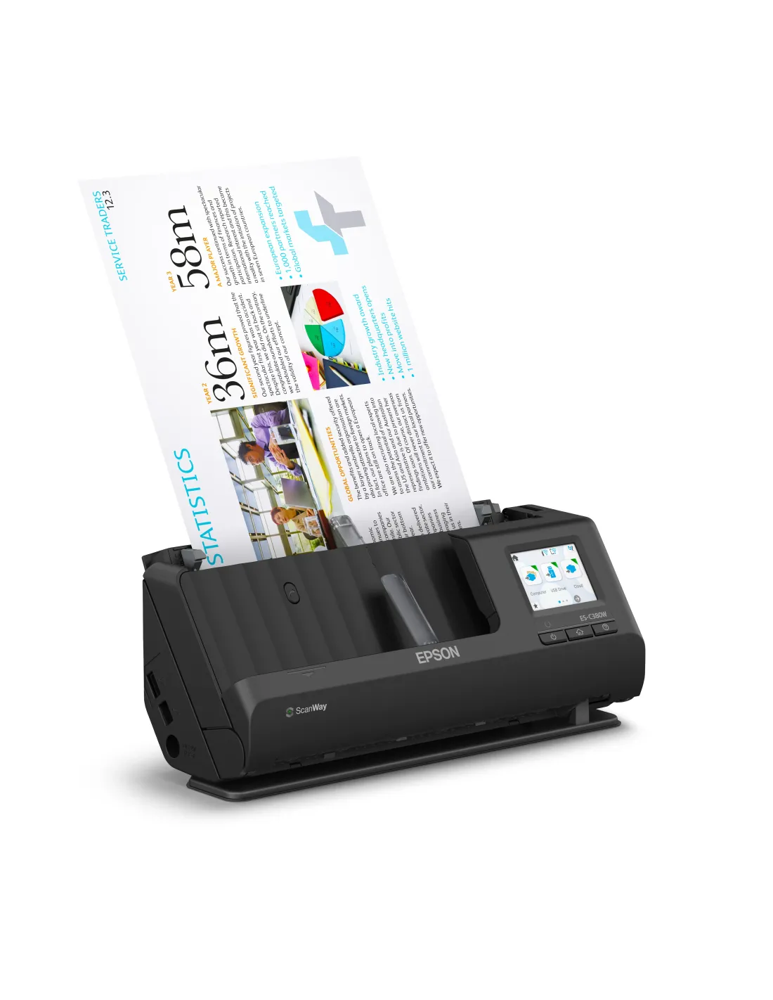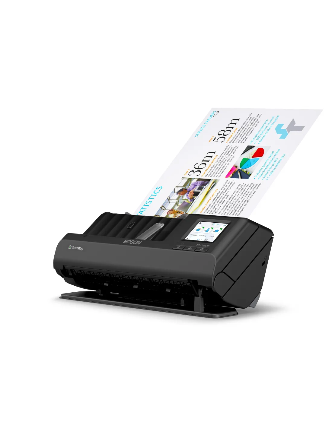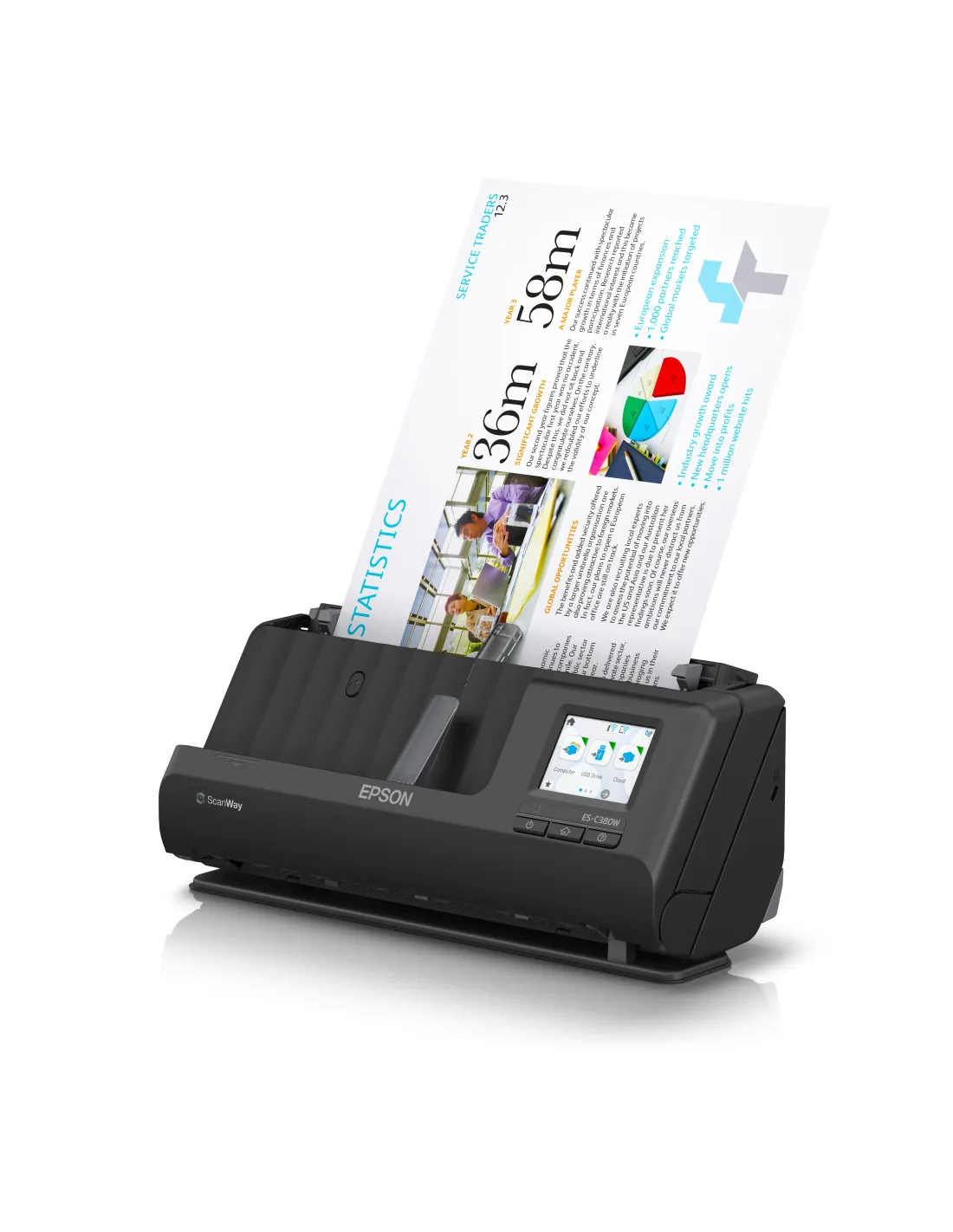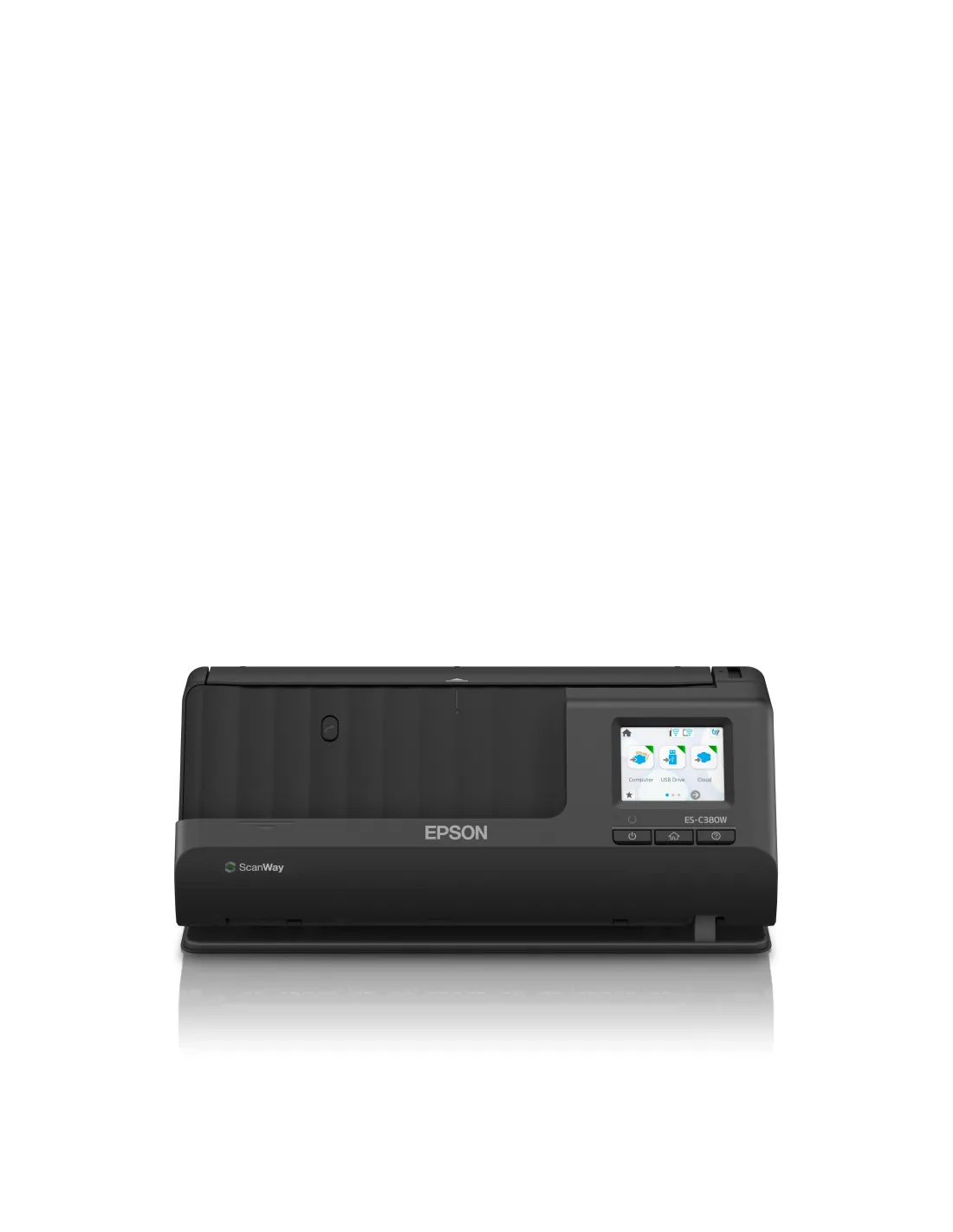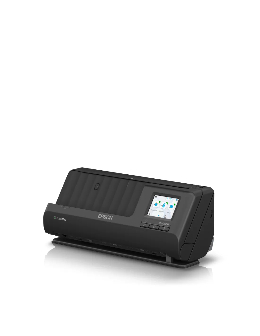 Epson ES-C380W. Tamaño máximo de escaneado: 215,9 x 5588 mm, Resolución óptica de escáner: 600 x 600 DPI, Profundidad de entrada de color: 30 bit. Tipo de escaneado: ADF + escáner alimentado por hojas, Color del producto: Negro, Tipo de control: Botones. Ciclo de trabajo diario (max): 3500 páginas, Fuentes de luz: ReadyScan LED, Escanear a: Correo electrónico, FTP, Network folder, Imprimir. Capacidad de entrada estándar: 20 hojas. Tamaño máximo de papel ISO A-series: A4, Tipos de media soportados de escaneo: Tarjeta de visita, Tarjeta de plástico, Post Card(JPN), ISO tamaño de serie A (A0...A9): A4, A5, A6