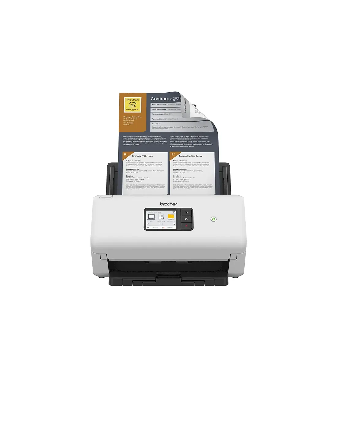 Marca Brother Modelo ADS4550WUN1 Escáner - Escaneado a doble cara - Velocidad de escaneado en monocromo A4 a 1 cara: 35 (páginas por minuto) - Velocidad de escaneado a color A4 a 1 cara: 35 (páginas por minuto) - Velocidad de escaneado monocromo A4 a doble cara: 70 (Imágenes por minuto) - Velocidad de escaneado a color A4 a doble cara: 70 (Imágenes por minuto) - Resolución: Óptica (600 x 600 ppp), Interpolada (1.200 x 1.200 ppp) - Factor de forma: Sobremesa - Escaneado inalámbrico - Escaneado móvil - Procesado de imagen: Alineación automática (alimentación) Detección fin de página Ajuste de márgenes Relleno de borde Relleno imperfecciones Eliminación de perforaciones Ajuste automático de detección de color Eliminación de páginas en blanco Ajuste de difusión - Gris Ajuste del tono de color Procesamiento de fondo Eliminación de un color Énfasis en los bordes Reducción del moiré Reducción de rayas verticales Ajuste del umbral de blanco y negro Corrección de caracteres Inversión en blanco y negro Reducción del ruido Suprimir línea trazada Escaneado 2 en 1 Escaneado 1 a 2 Modo de hoja portadora Modo tarjeta de plástico Escaneado de una sola página Escaneado continuo Detección de alimentación múltiple Detección de códigos de barras Compresión JPEG Imprinter digital Perfiles TWAIN personalizados - Formato soportado de los ficheros: PDF, TIFF, JPEG, PDF/A-1b - Funciones estándar: Escaneado a (Flujo de trabajo, USB, Servidor de email, PC, Carpeta de red, Red, SFTP, FTP, Archivo, Imagen) - Perfiles de escaneado: 25 redes preestablecidas - Escaneado directo - Control de alimentación: Inicio automático de escaneado Conectividad - USB 3.0 SuperSpeed - Wi-Fi: 2,4 GHz: IEEE 802,11 b/g/n (modo infraestructura) - Interfaz red cableada: 10BaseT/100BaseTX - Conectividad: Cableada, WiFi, USB - Configuración WiFi soportada - WiFi Direct - Seguridad de red cableada: SSL/TLS (HTTPS, SMTP), 802.1x (EAP-MD5, EAP-FAST, PEAP, EAP-TLS, EAP-TTLS), SMTP-AUTH, SNMP v3 - Seguridad de red WiFi: SSL/TLS (HTTPS, SMTP), SMTP-AUTH, WEP 64/128 bit, WPA-PSK (TKIP/AES), WPA2-PSK (TKIP/AES), WPA3-SAE (AES) *Wi-Fi Direct sólo admite WPA2-PSK (AES) Características General - Resolución - Funciones: Escaneado - Tamaño máximo del papel: A4 - Conectividad: Cableada, WiFi, USB - Panel de control: Pantalla táctil - Pantalla color táctil de 7,1 cm - Reloj de respaldo: Hasta 24 horas - Tipo de escáner: Dual CIS (sensor de imagen de contacto), Fuente de luz matriz LED Manejo de los soportes - Alimentador automático de documentos (ADF): 60 - Tamaño del soporte: Recorrido directo del papel (Ancho 50,8 - 215,9 mm), Papel Largo 5000mm, Altura 50,8 - 355,6 mm - Tipos de soporte: Tarjeta de plástico, Papel normal, Papel más grueso, Papel fino, Papel reciclado, Tarjeta de visita, Papel grueso - Gramaje de papel: 40 - 200 g/m2 - Espesor de papel: 0,08 ~ 0,28mm - Tamaño de la tarjeta de plástico: Largo (ISO) (85,60 mm), Ancho (ISO) (53,98 mm) - Espesor de la tarjeta de plástico: Hasta 1,32 mm Consumo de energía - Requisitos de energía: AC (100-240V AC 50/60Hz), DC (24V, 1.9A) - Nivel de potencia sonora: Escaneando (<59 dB) Dimensiones y pesos - 300 x 216 x 19 mm - 2,7 kg Entorno - Límite de funcionamiento: Humedad % (20 - 80%), 5°C - 35°C - Límite de almacenamiento: % Humedad (10 - 90%), -20°C - 60°C - Tiempo de calentamiento: USB conectado, aproximadamente 1 segundo desde el modo espera Fecha de revisión 07-01-2026 por RTY