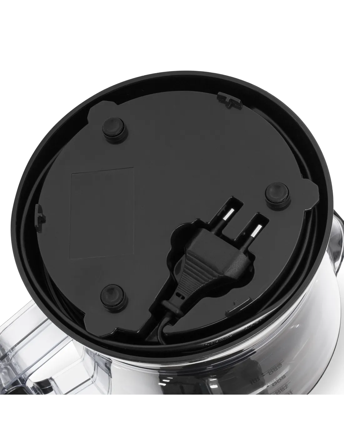 El motor empezará a girar automáticamente cuando presione una mitad de cítrico en el cono, por lo que podrá empezar a exprimirlo directamente tras cortar la mitad de la fruta. El cono pequeño extrae el zumo de limones y limas, y el cono grande es ideal para naranjas y pomelos. La tapa transparente garantiza que no se presiona hacia abajo el cono de manera accidental y también mantiene todas las piezas sin polvo. El innovador filtro para pulpa es ajustable, por lo que podrá determinar la cantidad de pulpa que pasa al zumo.