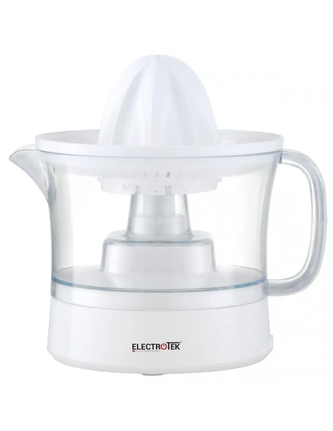 Exprimidor eléctrico 25W, jarra 0.5L. ELECTROTEK ET-EX50.Capacidad de la jarra: 0.5L.Giro en ambos sentidos.Piezas desmontables para una limpieza más cómoda.Material cuerpo y jarra: Plástico.Voltaje: 220-240V~50/60Hz.Potencia: 25W.EAN: 8436568810553.