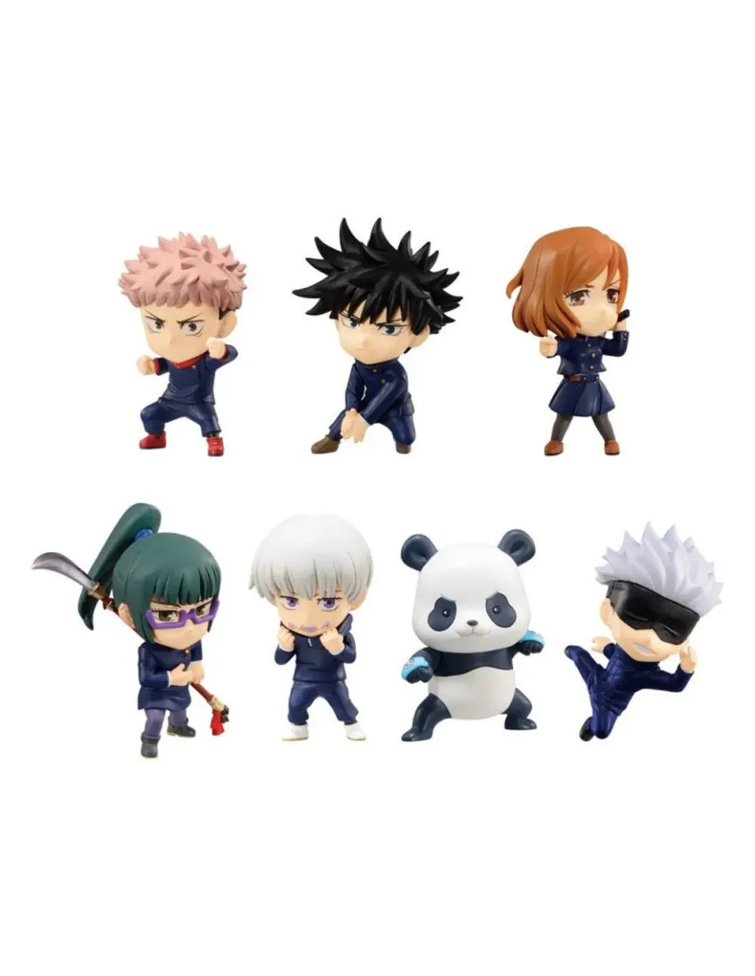 BANPRESTO lanza una linea de figuras de un tamaño de 4-5 centímetros dela serie de animación Jujutsu Kaisen, una de las series del momento. Por lacompra de 1 unidad se te entregará aleatoriamente una de las figurasrepresentadas en las imagenes. Por la compra de 10 unidades, se asegurala obtención de las 7 más tres repetidas entre ellas, con una probabilidadalta de que las repetidas sean las 3 primeras de la linea superior. Ademásse te entregará un pequeño expositor por la compra de 10 unidades.