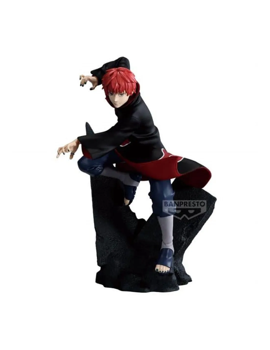 El modelo está elaborado en **PVC y ABS pre-pintado**, con un nivel de detalle que destaca por su expresividad y posado dinámico. Ideal para exhibir en vitrinas gracias a su **base soporte incluida**, esta figura representa a Sasori en una actitud que evoca su carácter y estilo dentro de la serie.
