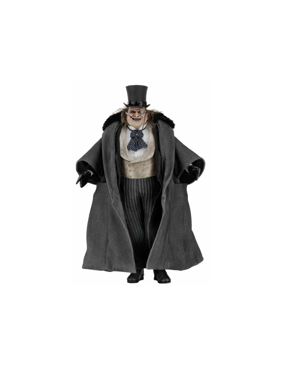 NECA presenta esta espectacular figura del "Mayoral Penguin" dentro de su colección de 38 cm (escala 1/4). Se trata de la versión protagonizada por el actor Danny DeVito en la película de Tim Burton "Batman Returns" (1992). Esta figura de PVC muestra al personaje listo para golpear la campaña electoral como una tonelada de ladrillos e incluye pelo sintético, una nueva capa de tejido extraíble, sombrero superior desmontable, mini cartel con el texto "Cobblepot for Mayoral", monóculo, sosteniendo un cigarrillo y un pescado a medio comer.