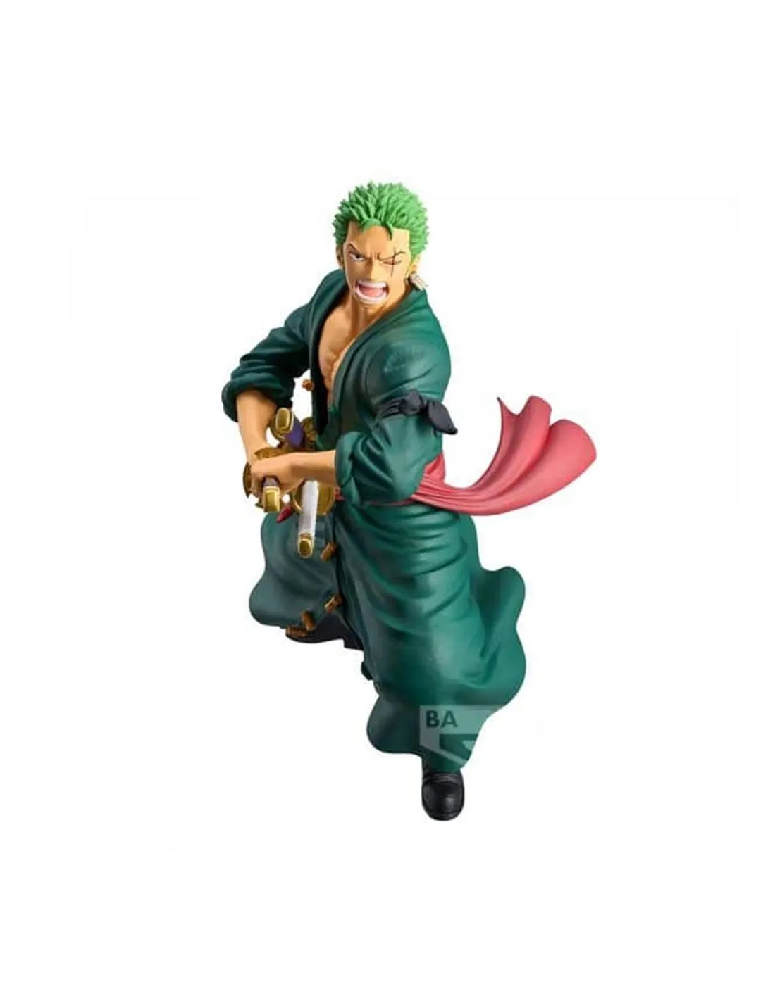 Banpresto presenta la figura de Roronoa Zoro del popular manga y anime One Piece Grandista. Esta figura está hecha en PVC mide unos 22 cm de alto e incluye una base soporte especial para exposición.
