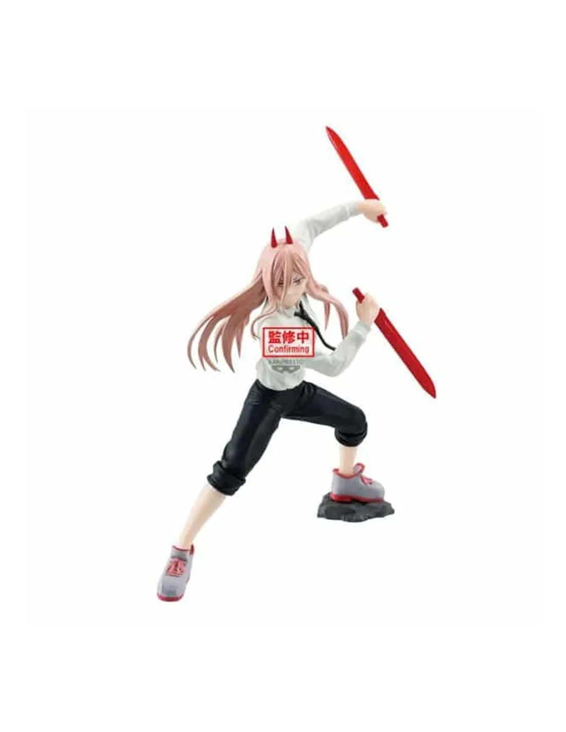 Power se presenta en una pose cargada de energía y expresividad, fiel al estilo visual del anime. Cada detalle, desde su expresión facial hasta los pliegues de su ropa, está cuidadosamente modelado y pintado para reflejar su carácter explosivo.