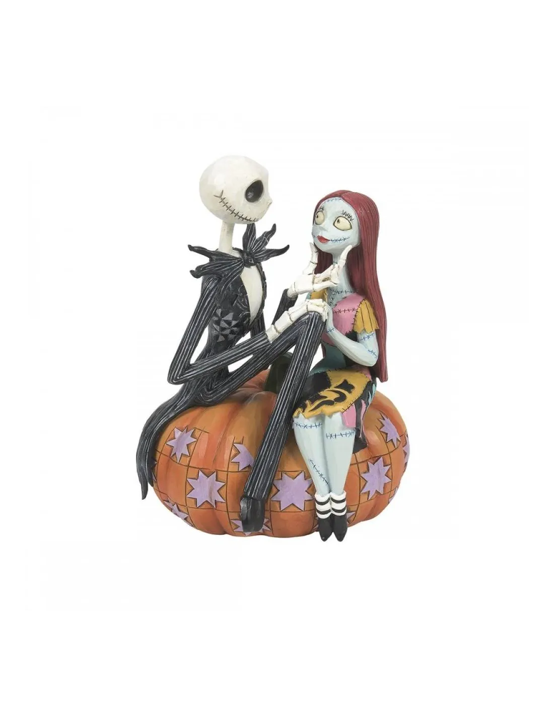 Jack y Sally están sentados encima de una calabaza en esta figura con temática de Halloween. El regalo perfecto para los fanáticos de Pesadilla antes de Navidad o para las parejas felices que aman