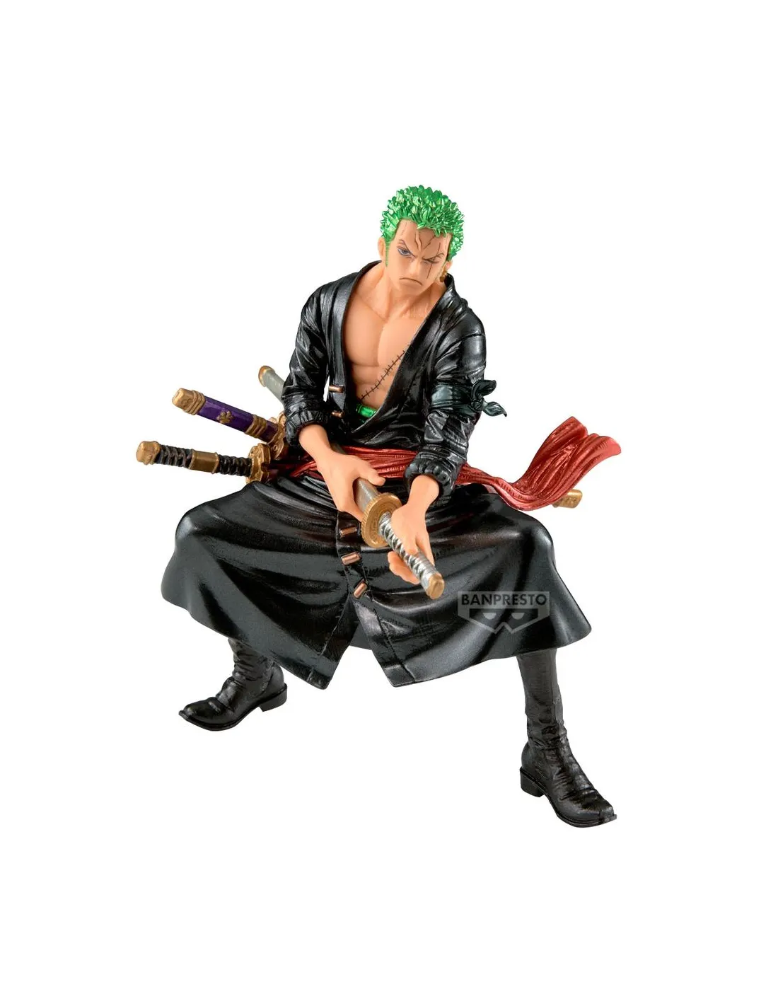 El punto fuerte de esta versión es su enfoque artístico. Inspirada en una escena de acción, la figura muestra a Zoro con una expresión determinada y una postura imponente. Cada detalle, desde el esculpido del rostro hasta el acabado de las espadas, ha sido trabajado para ofrecer una pieza visualmente impactante.