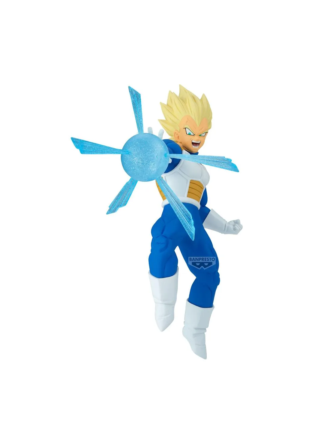 Esta versión de Vegeta destaca por su efecto de energía meticulosamente esculpido, propio de la línea **Gxmateria**, especializada en representar los ataques y poderes de los personajes con materiales translúcidos que aportan realismo y movimiento.