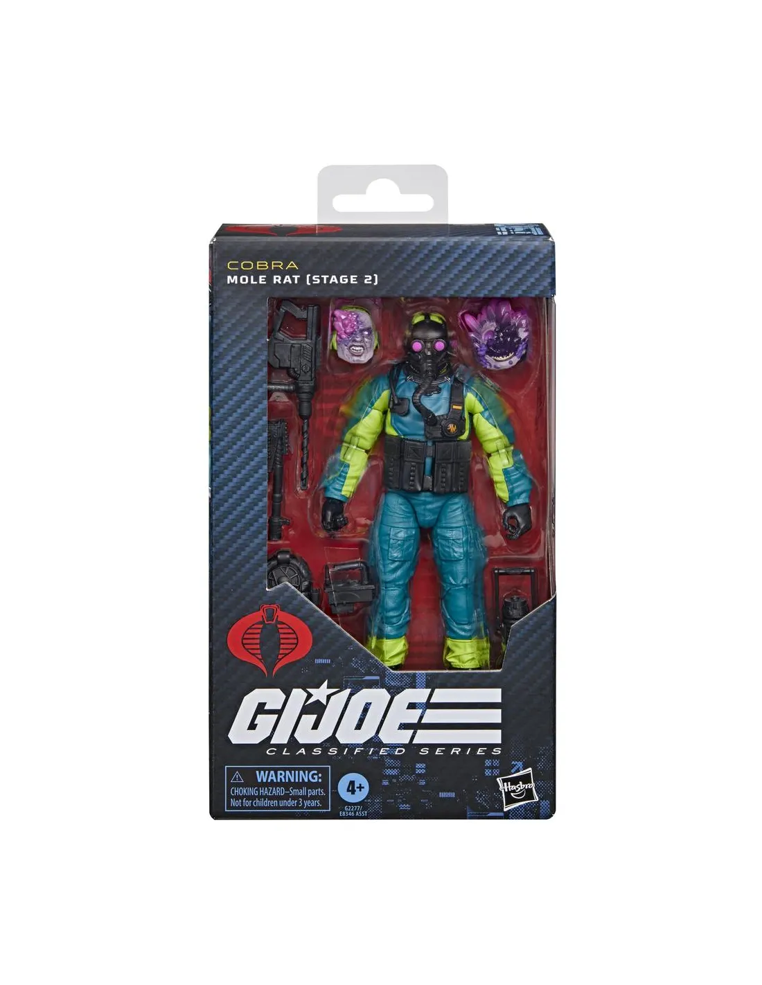 G.I. Joe es un equipo de fuerzas especiales altamente capacitado, integrado por hombres y mujeres provenientes de todas partes del planeta. Son elegidos para defender el mundo contra las amenazas de Cobra, una despiadada organización criminal que busca alcanzar el dominio global. Dondequiera que haya problemas, ahí estará G.I. Joe. Mole Rat (Stage 2) llega a la línea de figuras G.I. Joe Classified Series y está listo para la acción con múltiples puntos de articulación para que puedas colocarlo en diferentes poses. Esta figura Mole Rat viene con 8 accesorios inspirados en el personaje, incluyendo mochila, escáner, contenedor de energón oscuro, 2 cabezas con mutación alternativas y un taladro con broca y arma. Los Mole Rats, la carne de cañón científica de Cobra, continúan extrayendo depósitos del volátil energón oscuro como fuente de energía para alimentar a la máquina de guerra de Cobra. La exposición extendida a este material ha convertido a algunos soldados en carcasas sin mente inclinadas a la destrucción de todo a su paso, y la Fase 2 de la infección solo ha acelerado su degeneración.