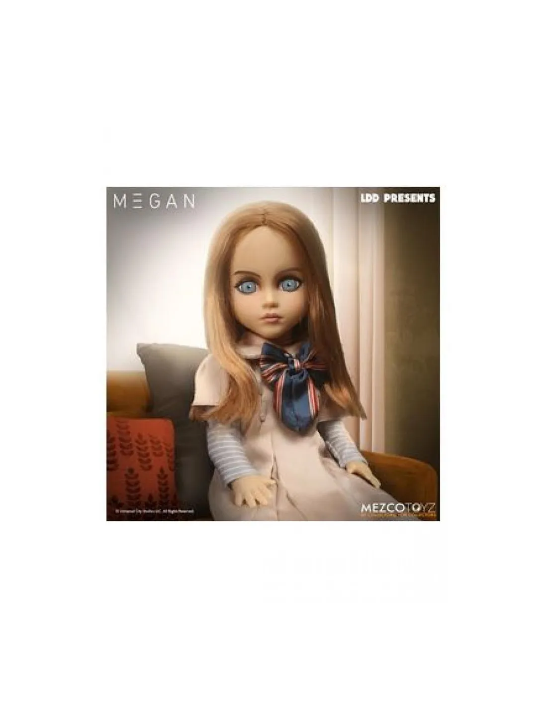 La figura de M3gan se incorpora a la colección Living Dead Dolls de Mezco Toyz con una altura de 25,5 cm. Está basada en el personaje de la pelÃcula de terror "M3gan". Se muestra con su caracterÃstica camisa de rayas bajo un vestido beige con pajarita, medias blancas y las clásicas Mary Janes negras. Cuenta con 5 puntos de articulación y se presenta en una caja con ventana.