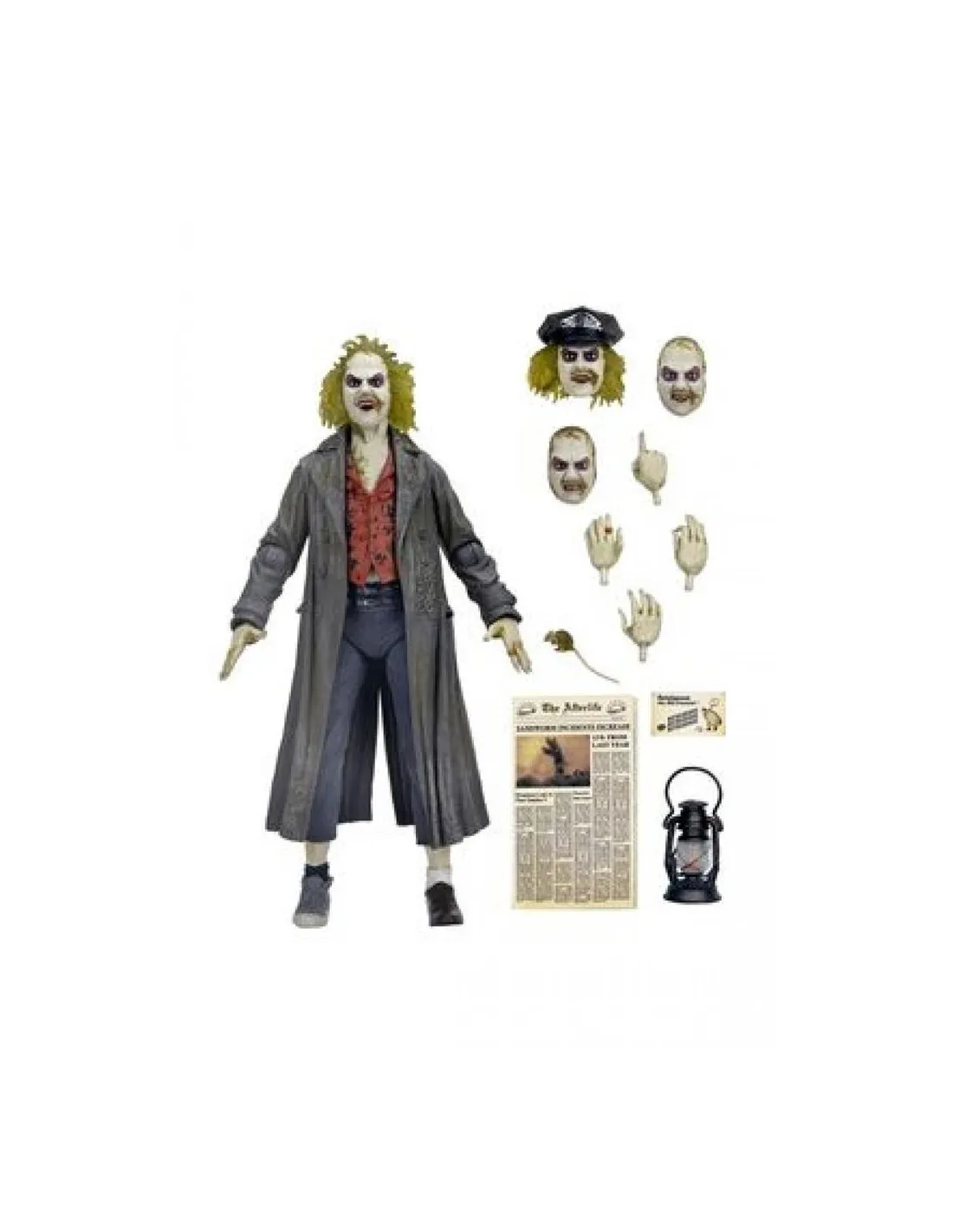 Neca presenta, dentro de la colección Scale Action Figure, la figura de Ultimate Beetlejuice Tour Guide The Bio-Exorcist. Mide 18 cm y está basada en el personaje de la pelÃcula de 1988 "Beetlejuice" ("Bitelchús" en España). Incluye 3x placas faciales extras, 1x sombrero, 4x manos,1x rata, 1x periódico, 1x linterna y 1x folleto de Betelgeuse. Se presenta en una caja con ventana.